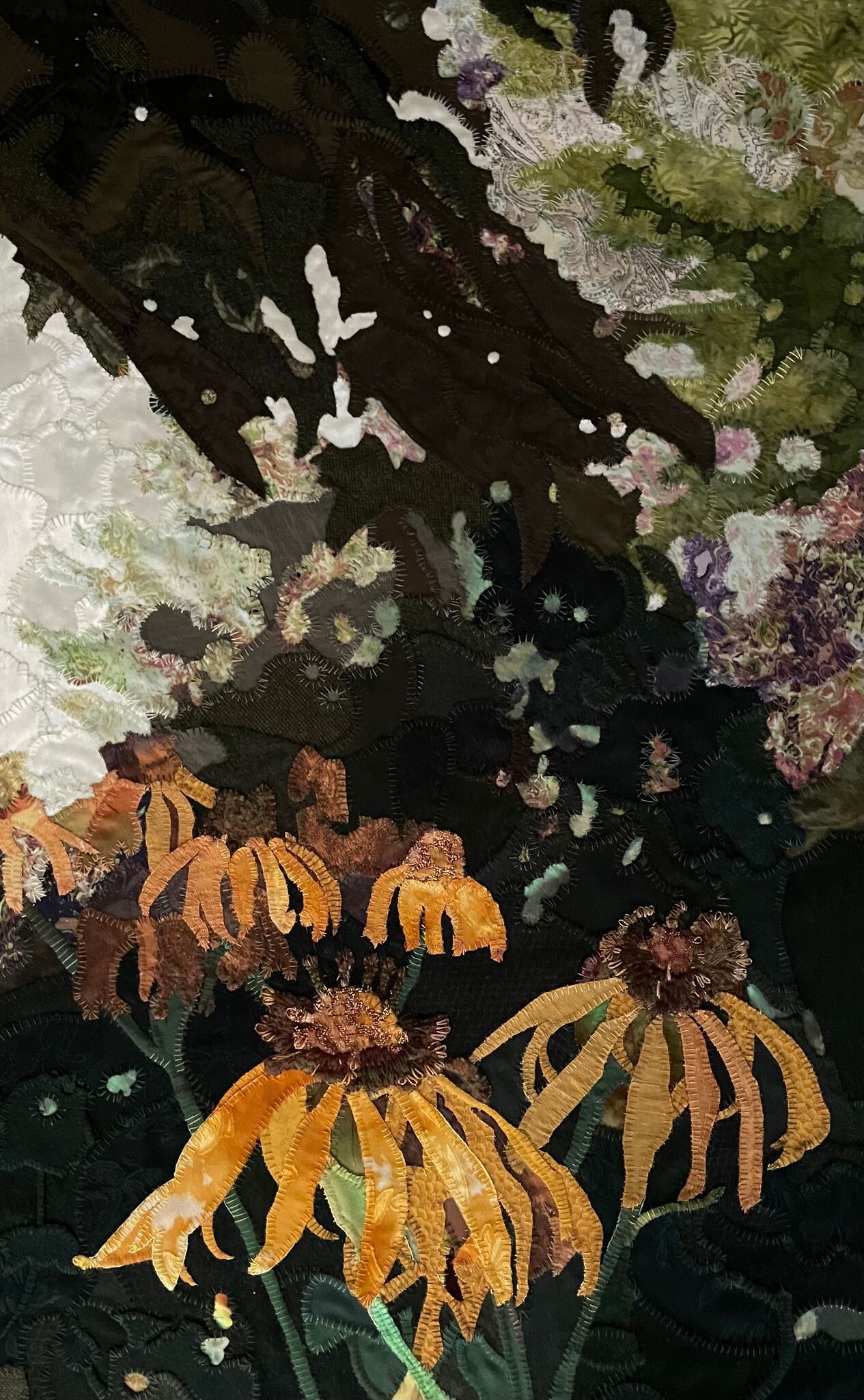 Als textielkunstenares maakt zij 'schilderijen' van textiel. Deze werken zijn opgebouwd uit uiteenlopende kleine stukjes stof (recycled), vastgezet met naald en draad.