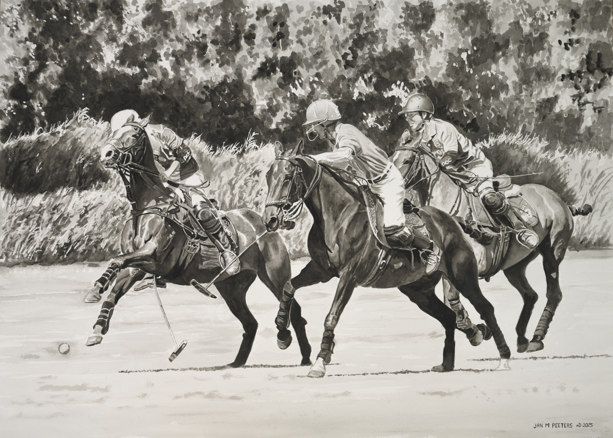'Chasing the Ball' is gemaakt voor de wedstrijd die Winsor & Newton in 2025 heeft uitgeschreven. Daarvoor mochten uitsluitend (minimaal één) de acht kleuren worden gebruikt die de verffabrikant eerder dat jaar had uitgebracht. 'Chasing the Ball' won de eerste prijs van de deelnemers uit Nederland en toont een moment van de Zeeland Polo Cup, in 2020 gehouden in Domburg.