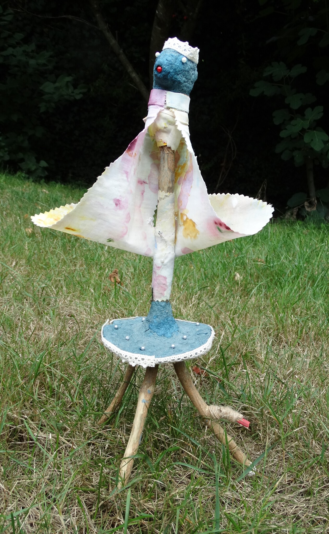Deze koningin is ontstaan uit een gevonden tak. Papier, stof en touw maakte haar tot koningin.