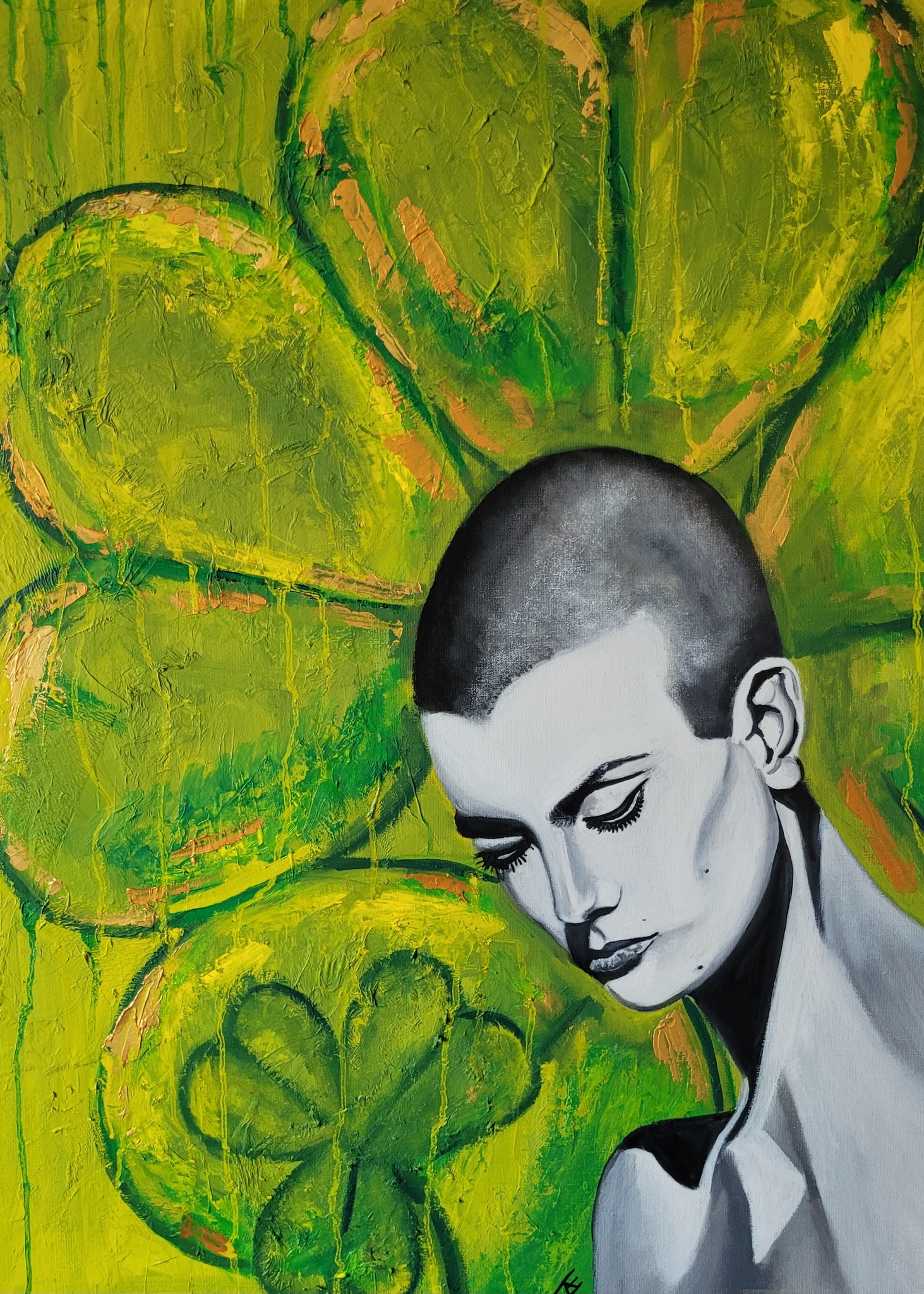 portret Sinead O'Connor met zwarte baklijst