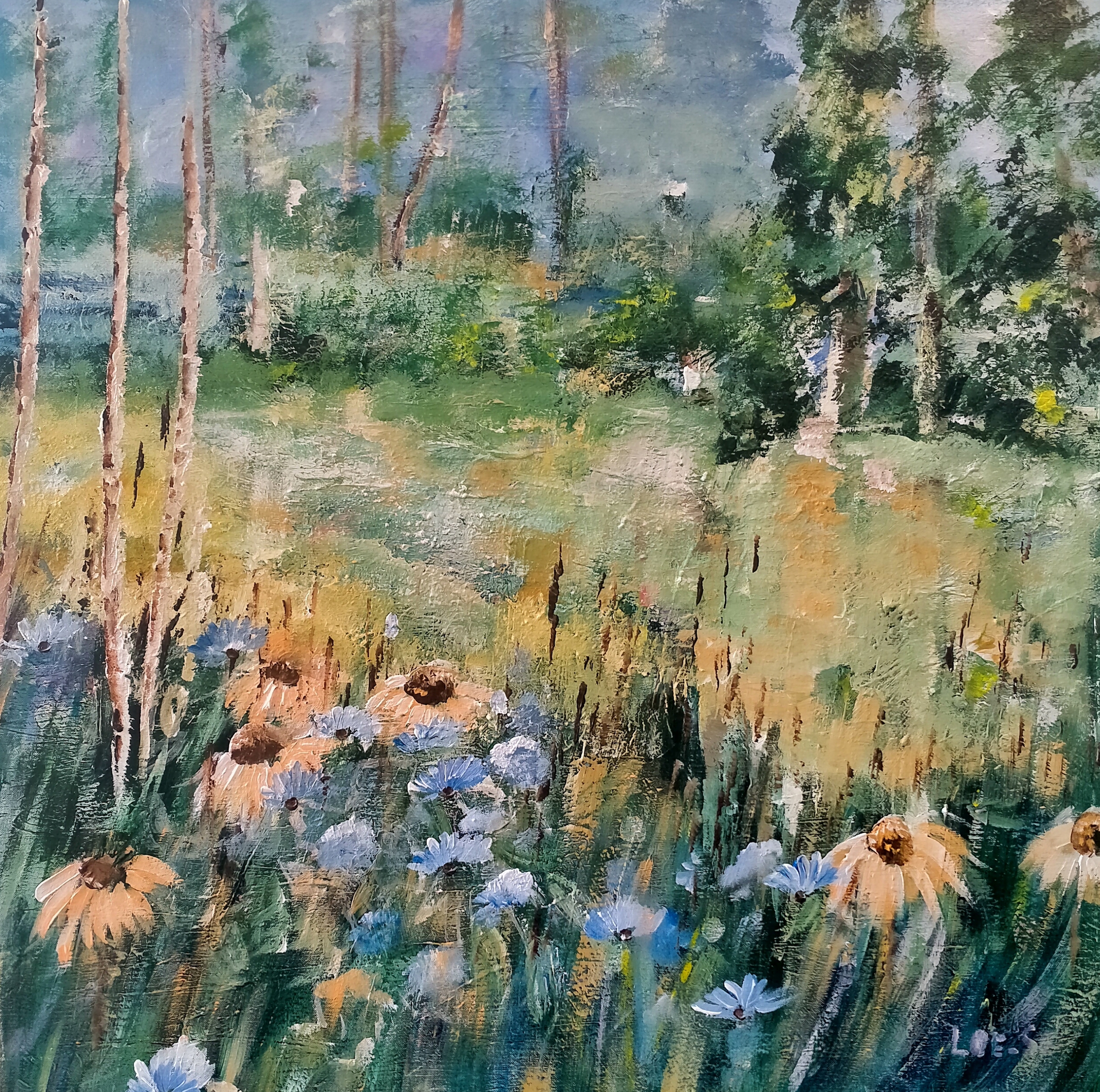 Geel Landschap Blauw Bloemen