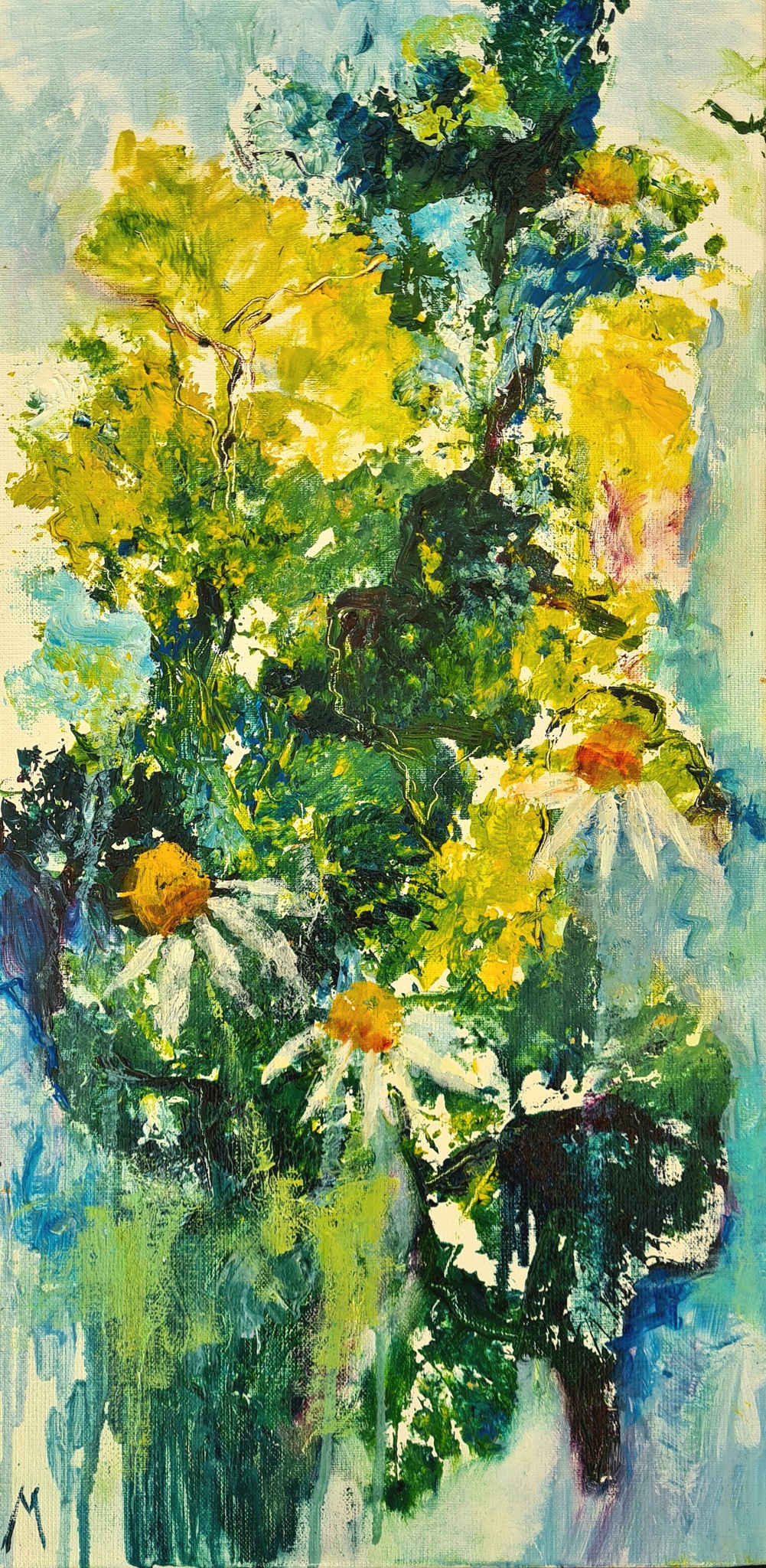 Altijd de strijd met het onderwerp, wat te schilderen, wat raakt mij of zie ik op dit moment. De kleuren bepalen de sfeer. Soms een fel dan weer getemperd kleurgebruik. Liefst buiten, vaak binnen. Een kunstzinnige visie geven op een alledaags tafereel of onderwerp. Dan heb ik plezier in mijn werk