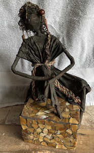 Afrikaans beeld bewerkt met keramische- en glas tegels.