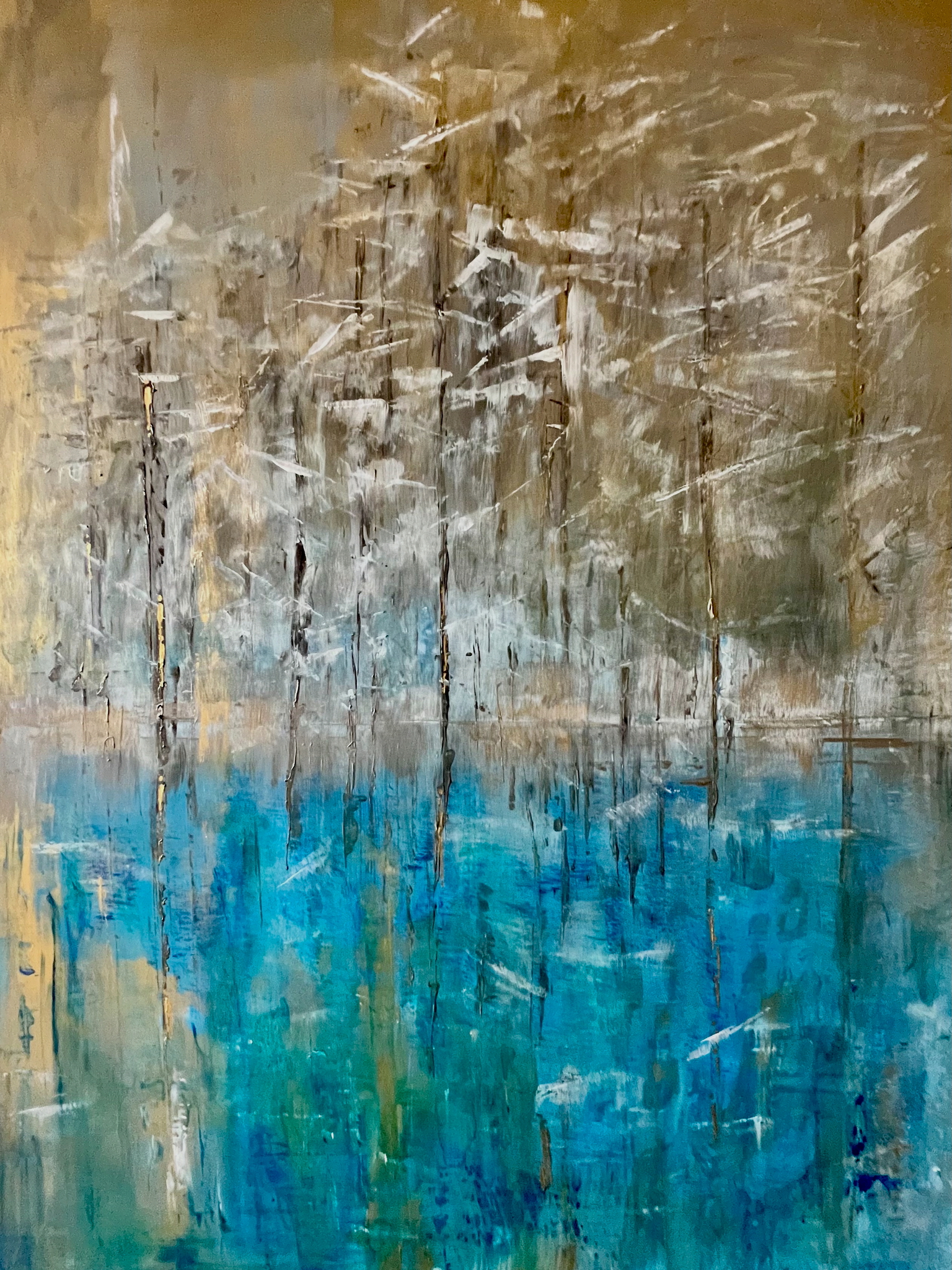 Wit Abstract Blauw Acryl Water Sneeuw Bos Zilver