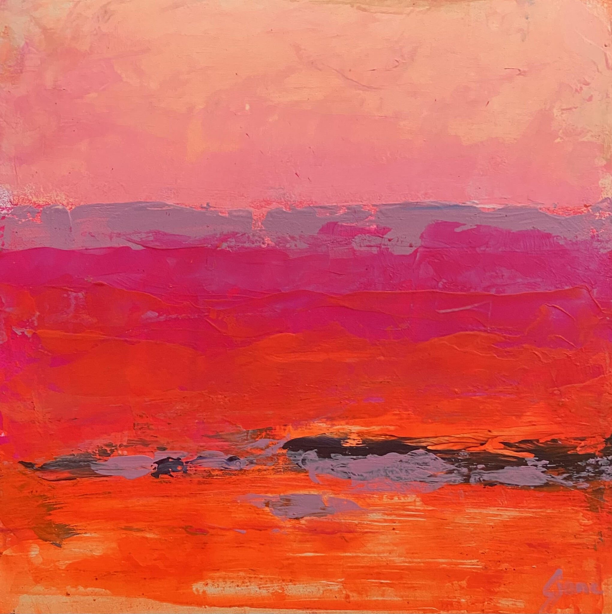 Het landschap is mijn grootste inspiratiebron. In de zomer heb ik veel buiten geschilderd. Mijn landschappen zijn kleurrijk en sterk geabstraheerd. Op het moment zijn mijn landschappen abstract.
