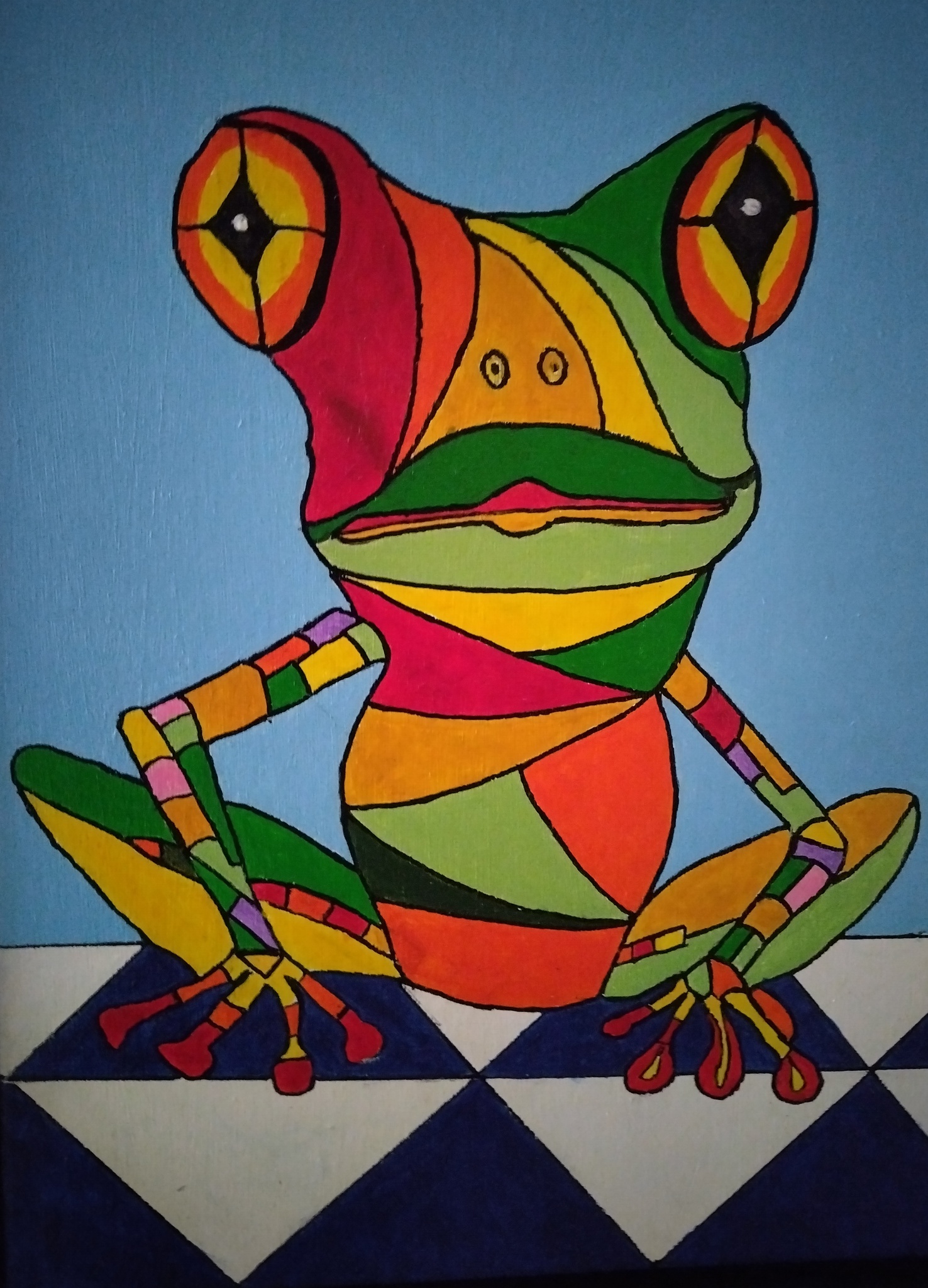 Kikker op muur picasso stijl