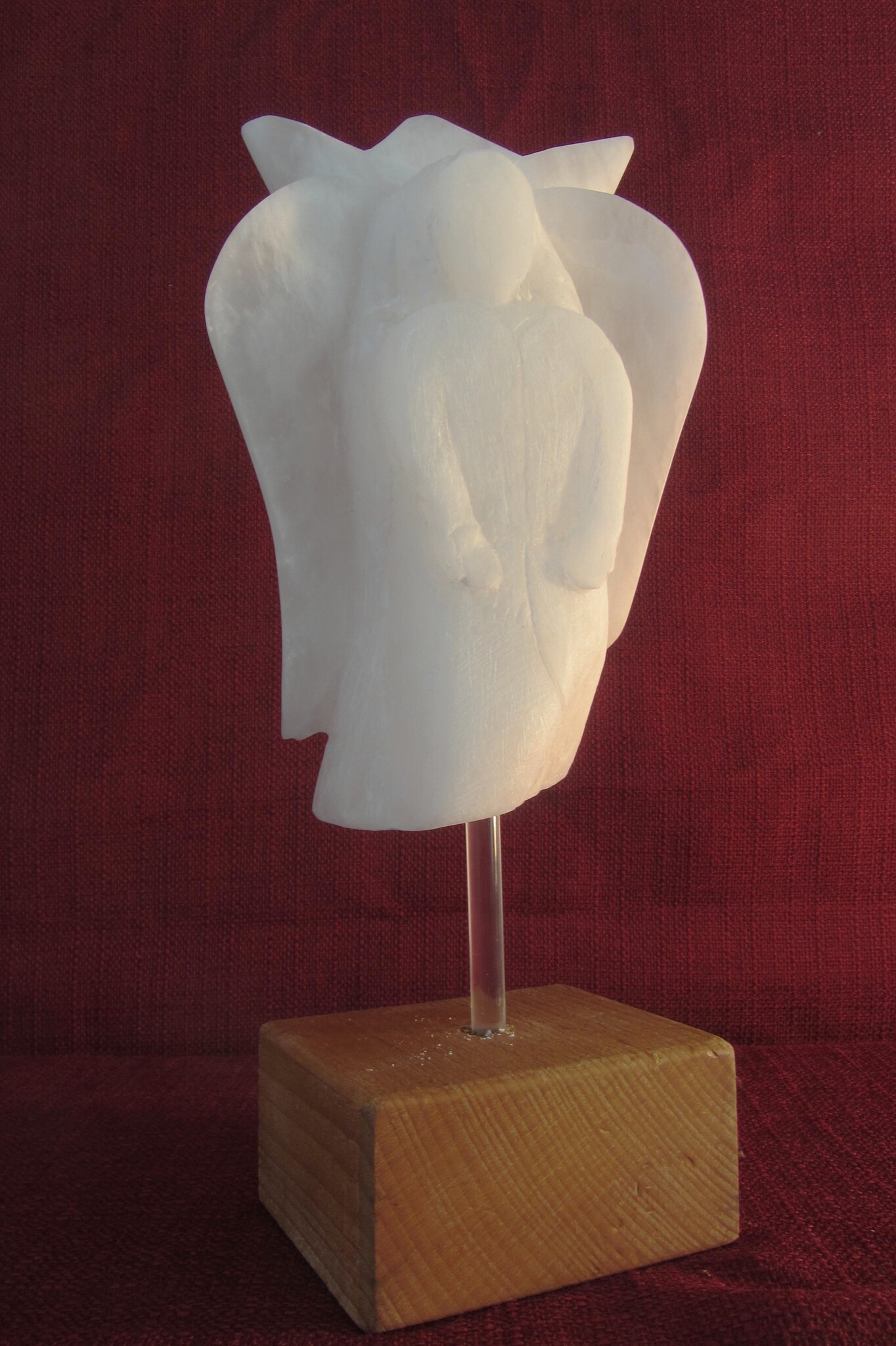 Deze engel was voorbestemd om naar een dierbare te gaan. Deze zomer afgewerkt en op houten sokkeltje geplaatst.
