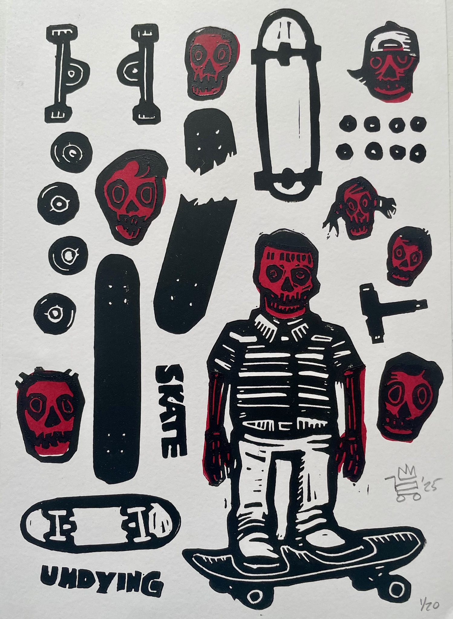 “Undying Skate (red/punk)"  Artist: REX (Jurriaan Rexwinkel)  Gesigneerd/signed: hand paraaf/Initials/stamp  Jaar/year: 2025 Papier/paper:  Genummerd/number: 20 Formaat blad/Size of paper: A4 21 x 29,7 cm 8.27 x 11.8 inches  Format image: A4 21x 29,7 cm 8.27 x 11.8 inches  Investing in a work of art can be an excellent short-term financial investment.