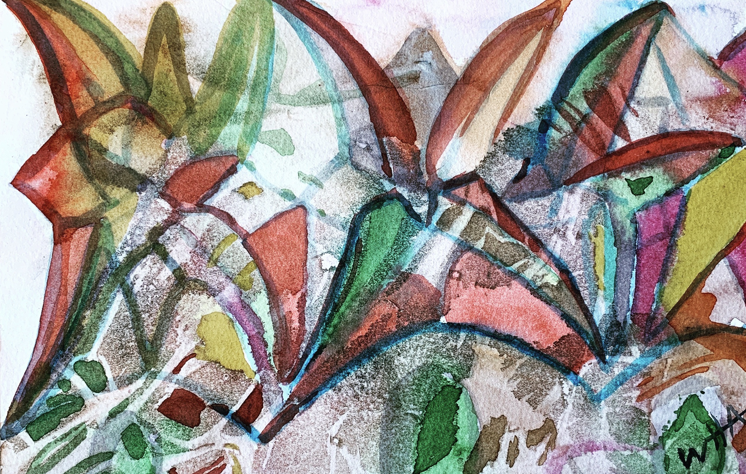 Rood, groen, geel en blauw versmelten tot een ongrijpbaar geheel. De scherpe punten moeten een bepaalde spanning oproepen