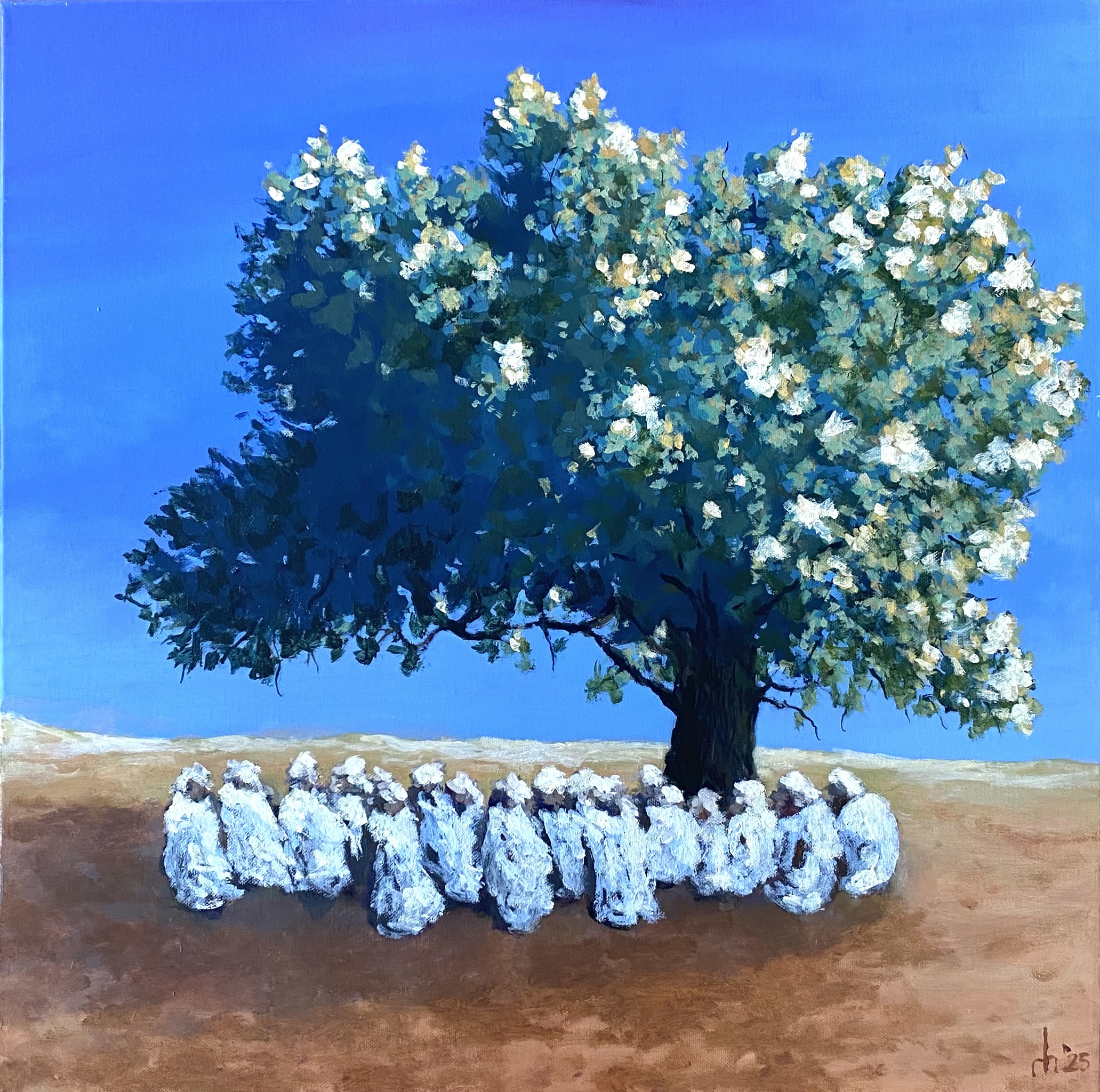 Met zijn fascinatie voor bomen is Hiddehidde langzamerhand bekend geraakt, boom portretten heten ze. Zichtbaar in de vorm is wat er is gebeurd in het leven van de boom. Vrolijk vrijuit gegroeid, reikend naar de lucht, maar ook geteisterd, gebogen door de wind, afgescheurd, gezaagd en gehakt, met groeizame seizoenen en altijd een huis voor vogels en insecten. En soms ook als vergaderplek, zoals deze in Kaduna, Nigeria.