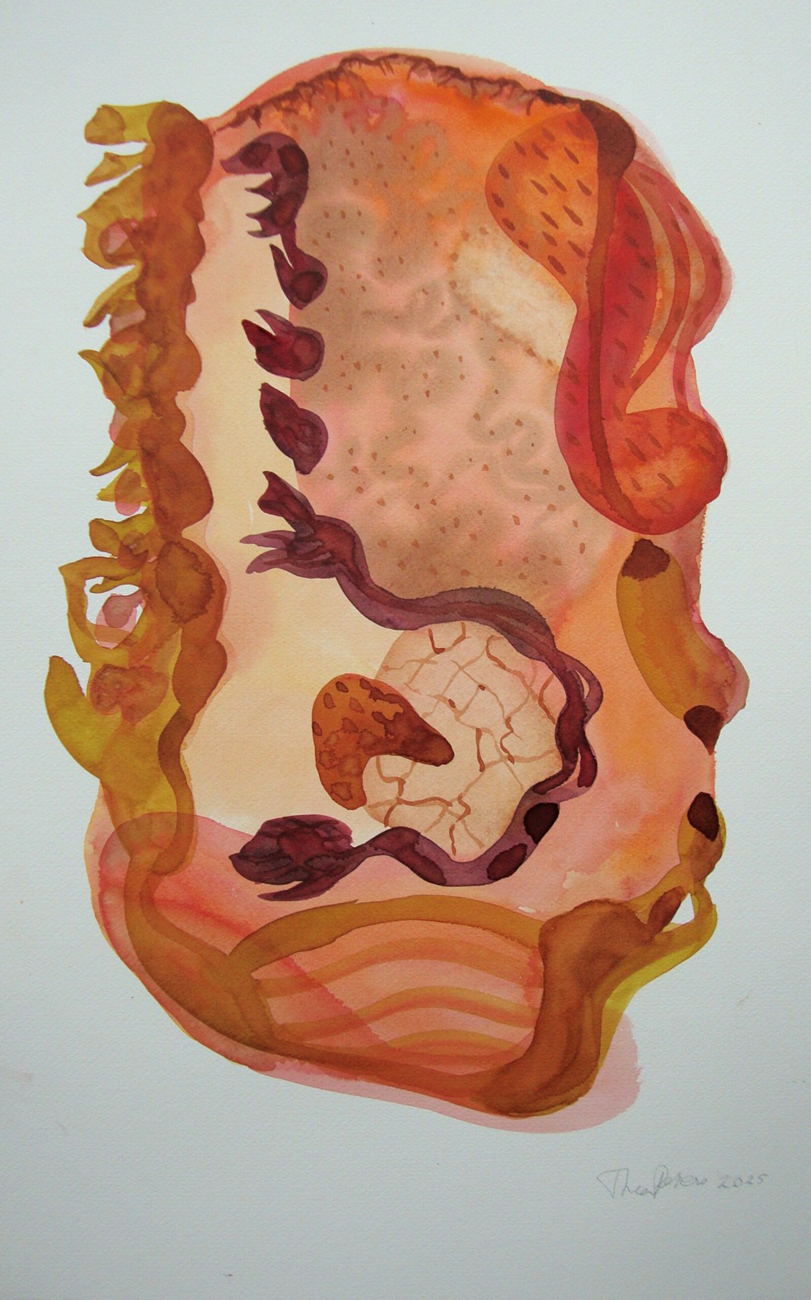 Abstract Modern Mystiek Spiritueel Bruin Kunst Roze Brown Vorm Insect World Schild Inner Watercolour Organische Shield Mystical Biomorfe