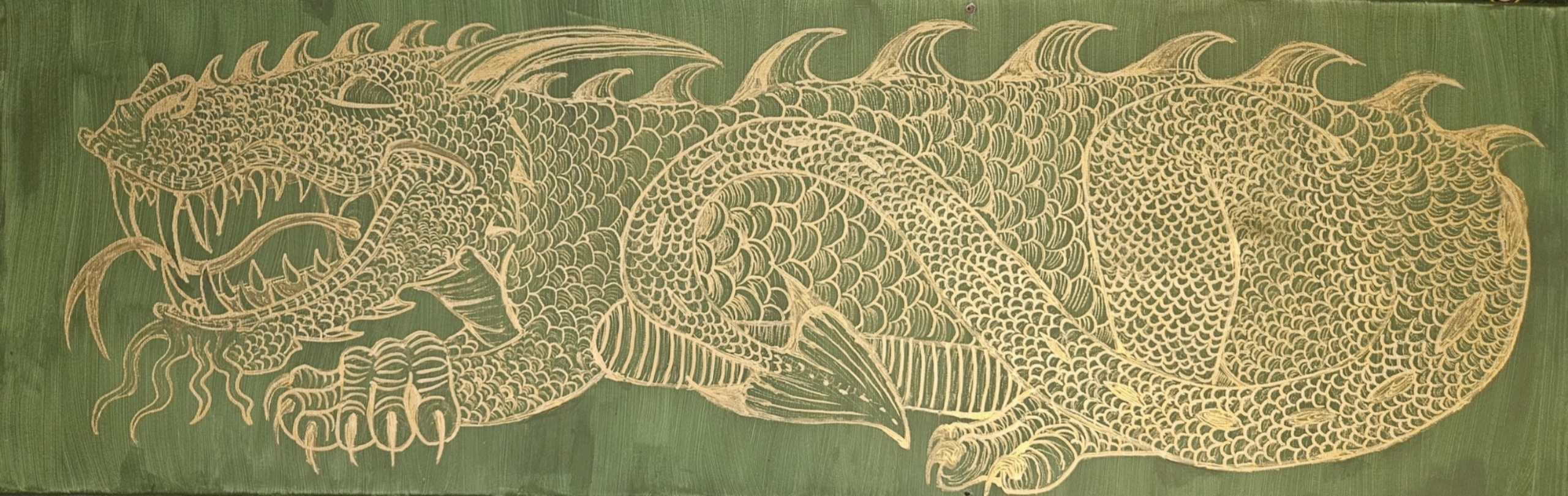 Uit mijn hoofd met gouden stift getekend op canvas met acrylverf achtergrond