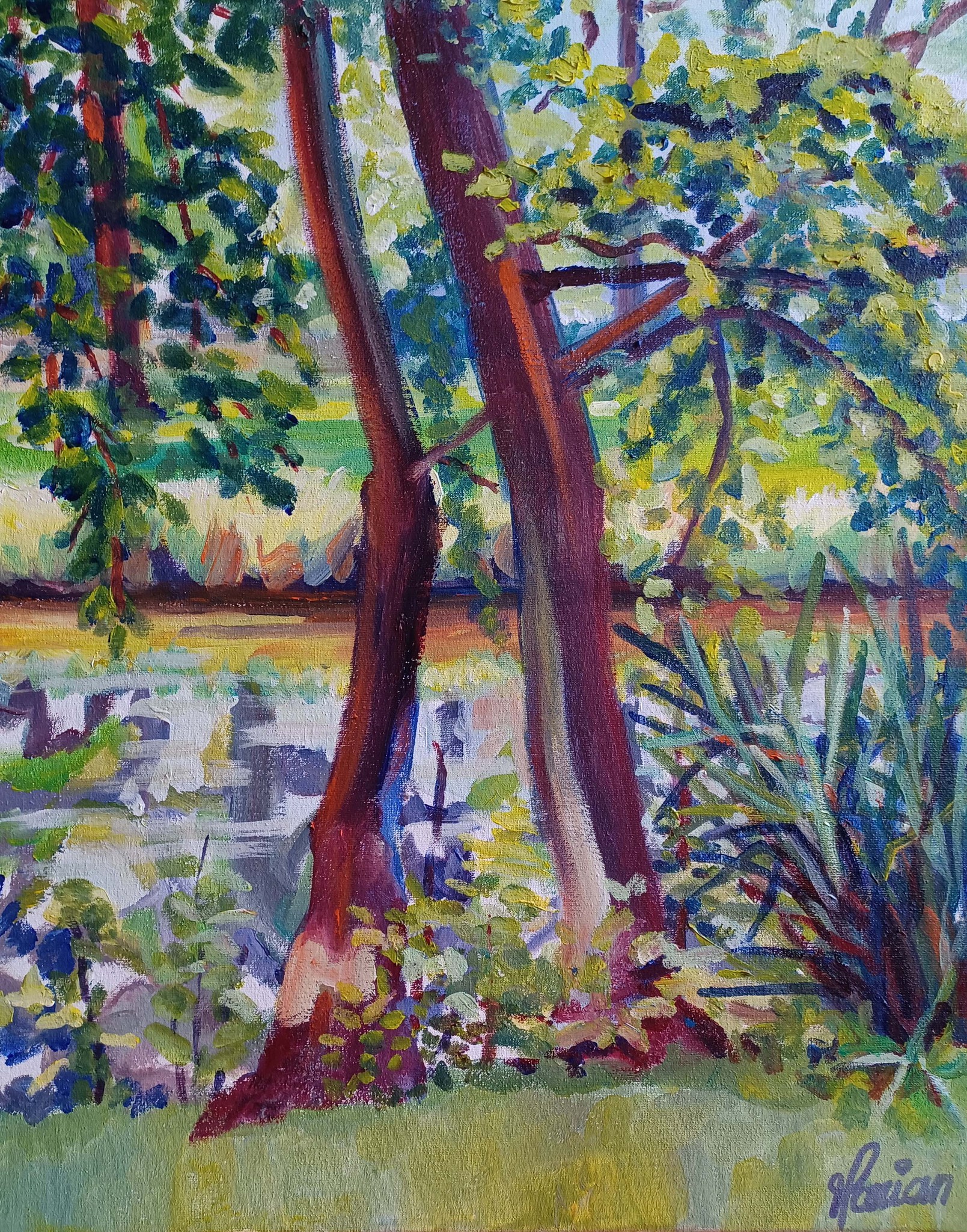 Weer zo fijn buiten geschilderd bij Het Slot, met veel mensen van De Toets! Maar niet het Slot zelf. Het was warm en de gracht tussen de bomen door was prachtig vanuit de schaduw.