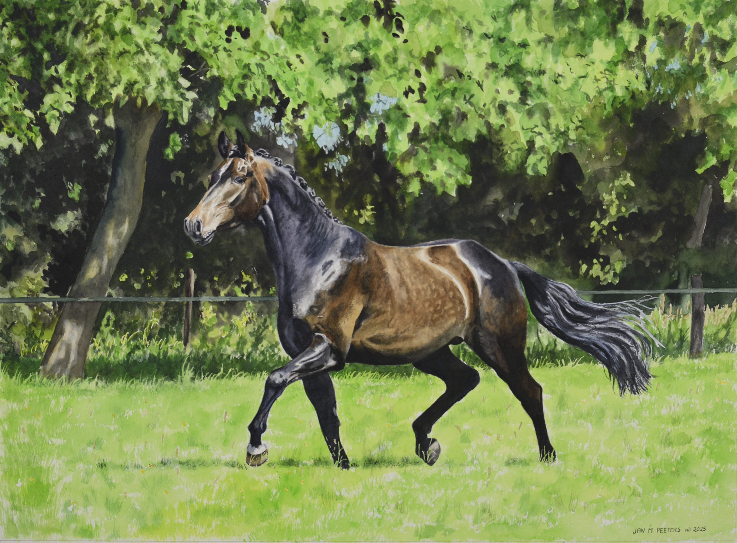 De dressuurhengst Onze Evert (2019) is het laatste en (volgens de nabestaanden) het beste paard dat Evert Treep gefokt heeft. Zo heeft ook elk schilderij zijn eigen verhaal. Bijzonder dat ik dit werk heb mogen maken.