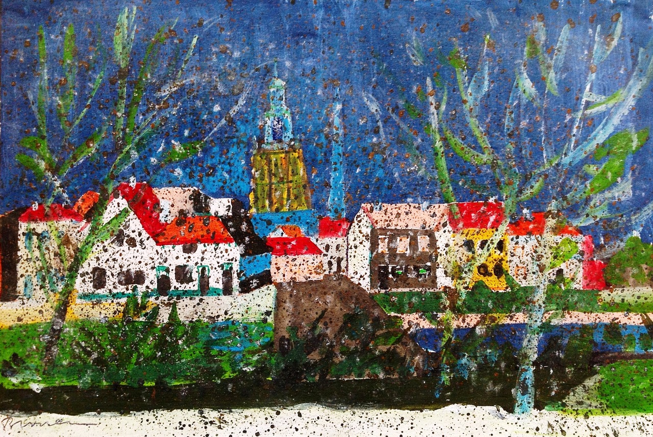 Bert Voortman 1916 - 2012 . bezocht voor W.O. II de Avondtekenschool en kunstacademie in Arnhem. Hij kreeg o.a. les van Johan Mekkink, de latere directeur van het gemeentemuseum in Arnhem, thans Museum voor Moderne Kunst. Hij heeft alle genres en technieken van het tekenen en schilderen beoefend, daarbij een voorkeur voor landschappen en stadsgezichten. Vooral van zijn geliefde Zutphen heeft hij in een expressieve penseelvoering veel mooie plekjes in Zutphen en omgeving vastgelegd in aquarel, gouache en acryl. Daarnaast portretteerde hij vele modellen. Onder andere geëxposeerd in Zutphen, Vorden, Velp, Arnhem, Apeldoorn, Rotterdam en Menton Frankrijk.