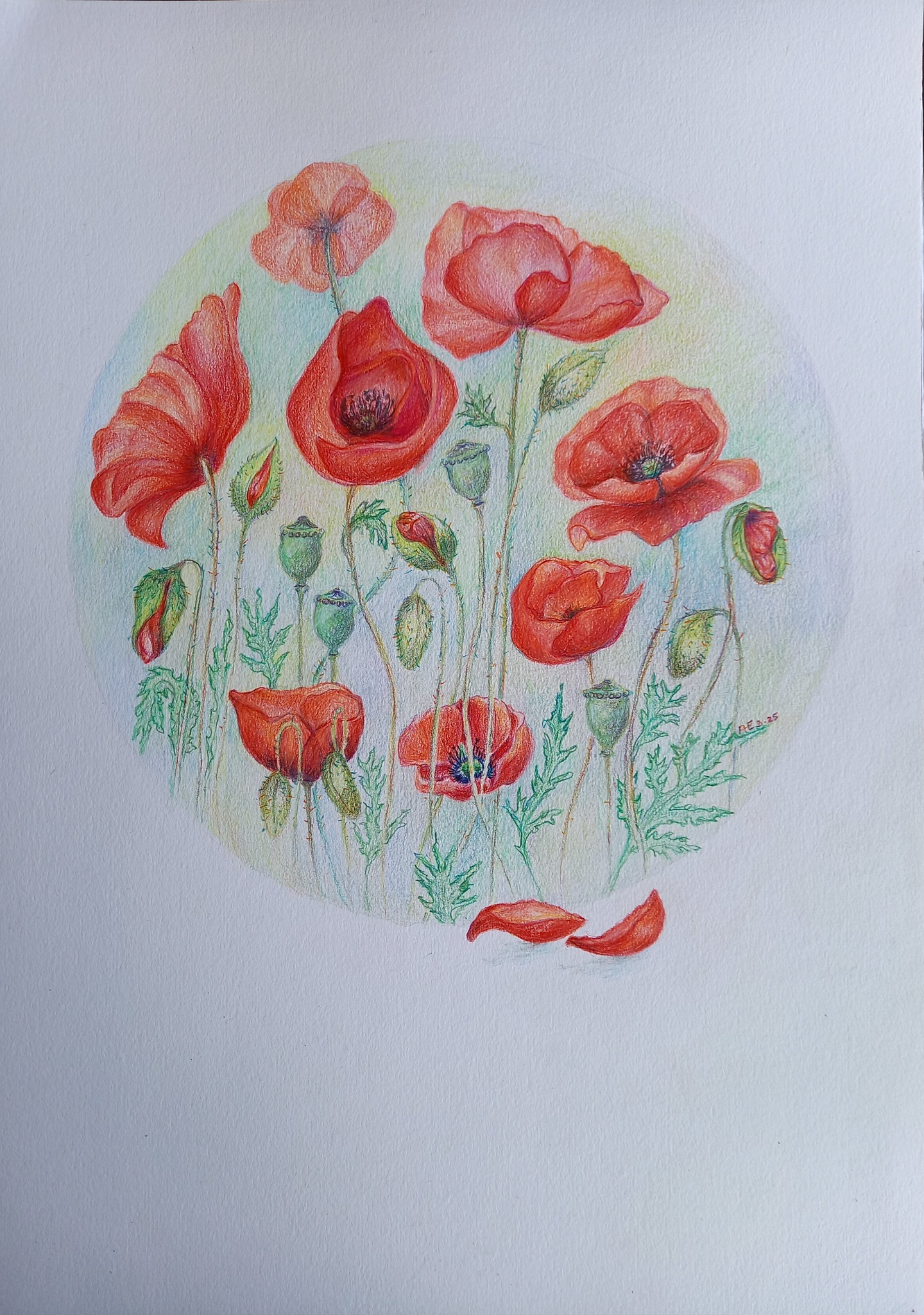 Mandala Kleurpotlood Papaver Klaproos Zaaddoos Bloemknop Bloem Bloeien Tuin Border Rood Poppy Hoop Slagvelden