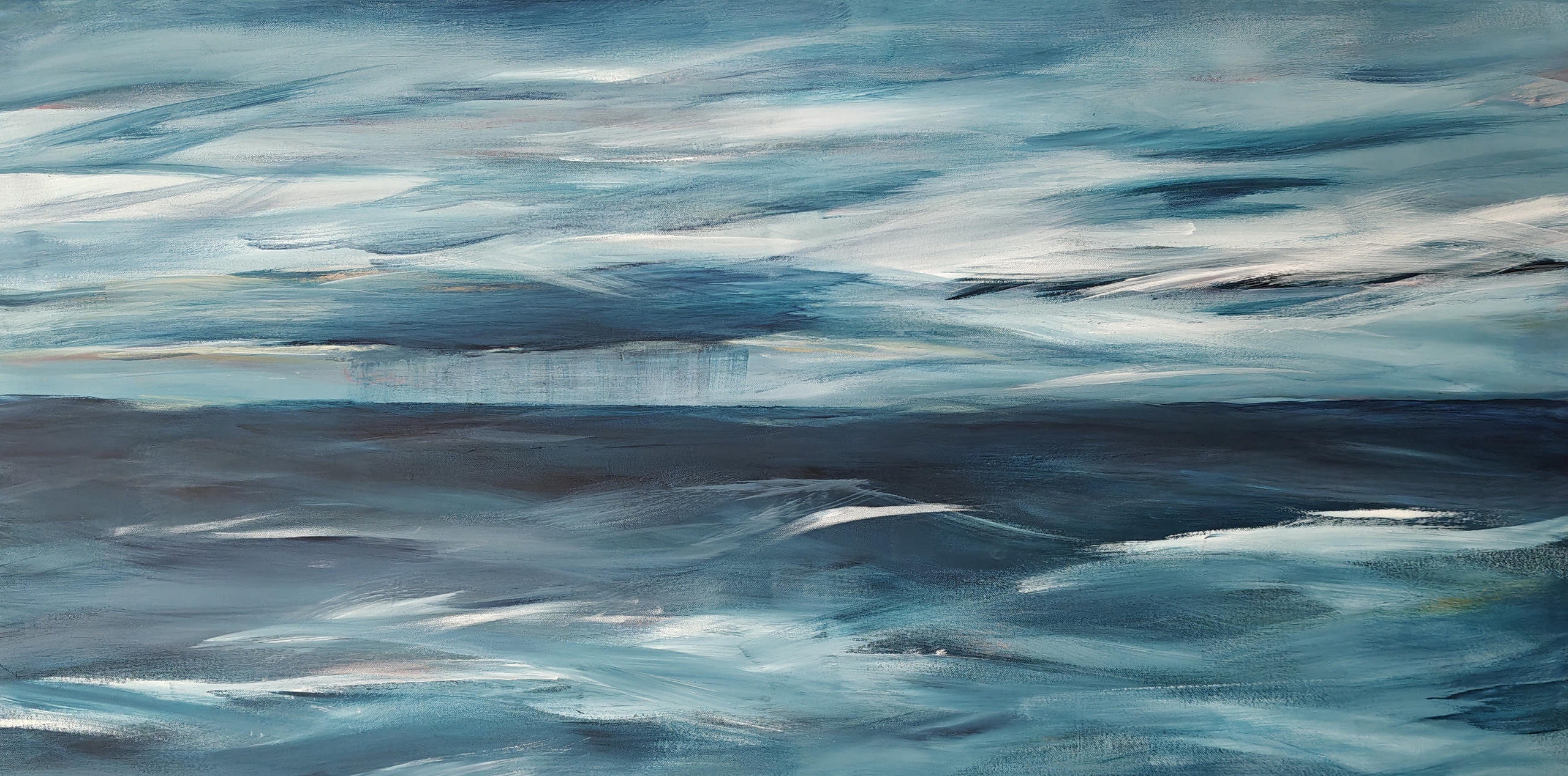 Abstract Landschap Blauw Expressief Wolken Water Zeegezicht Ruw