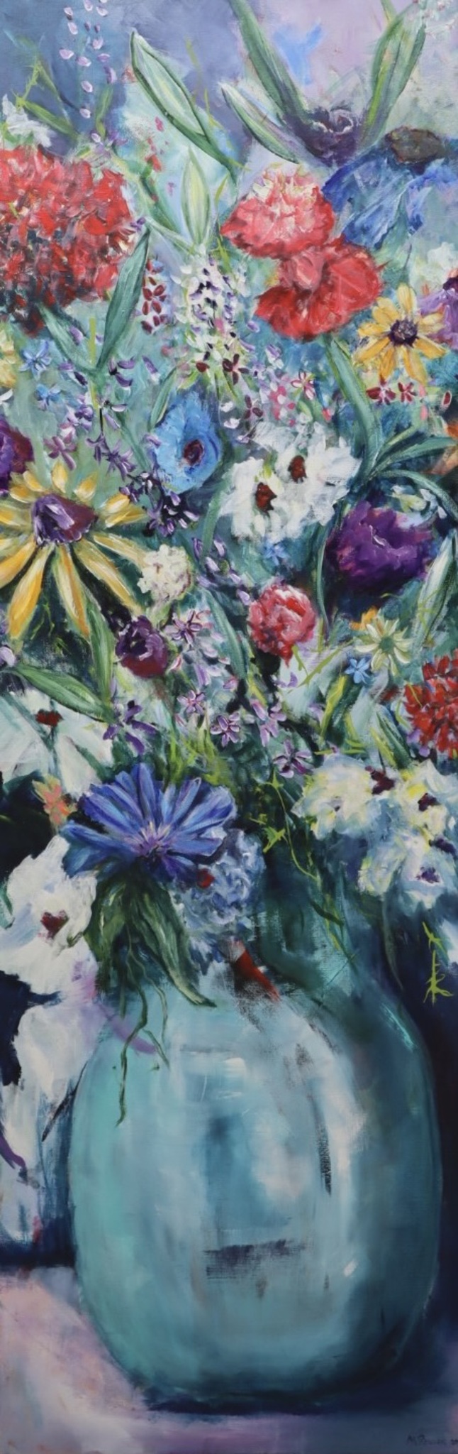 Ik schilder wat me raakt. Emoties ontstaan door natuur, actualiteit of persoonlijke ervaringen. Zo ontstaan schilderijen met heldere tinten, pasteltinten of primaire kleuren. Ik geniet er van.