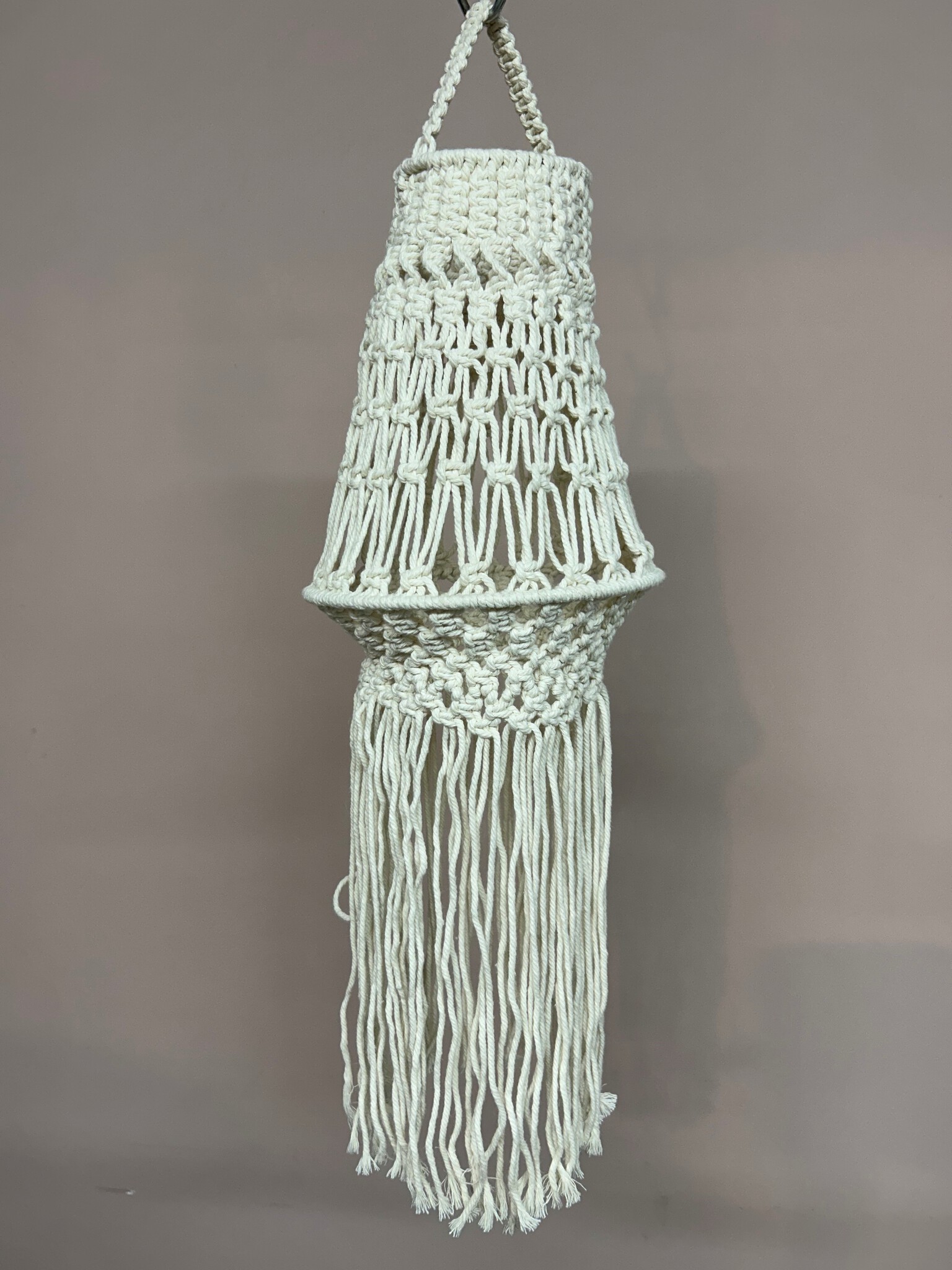 Handgemaakte macramé lantaarn met katoen op metaaldraad.