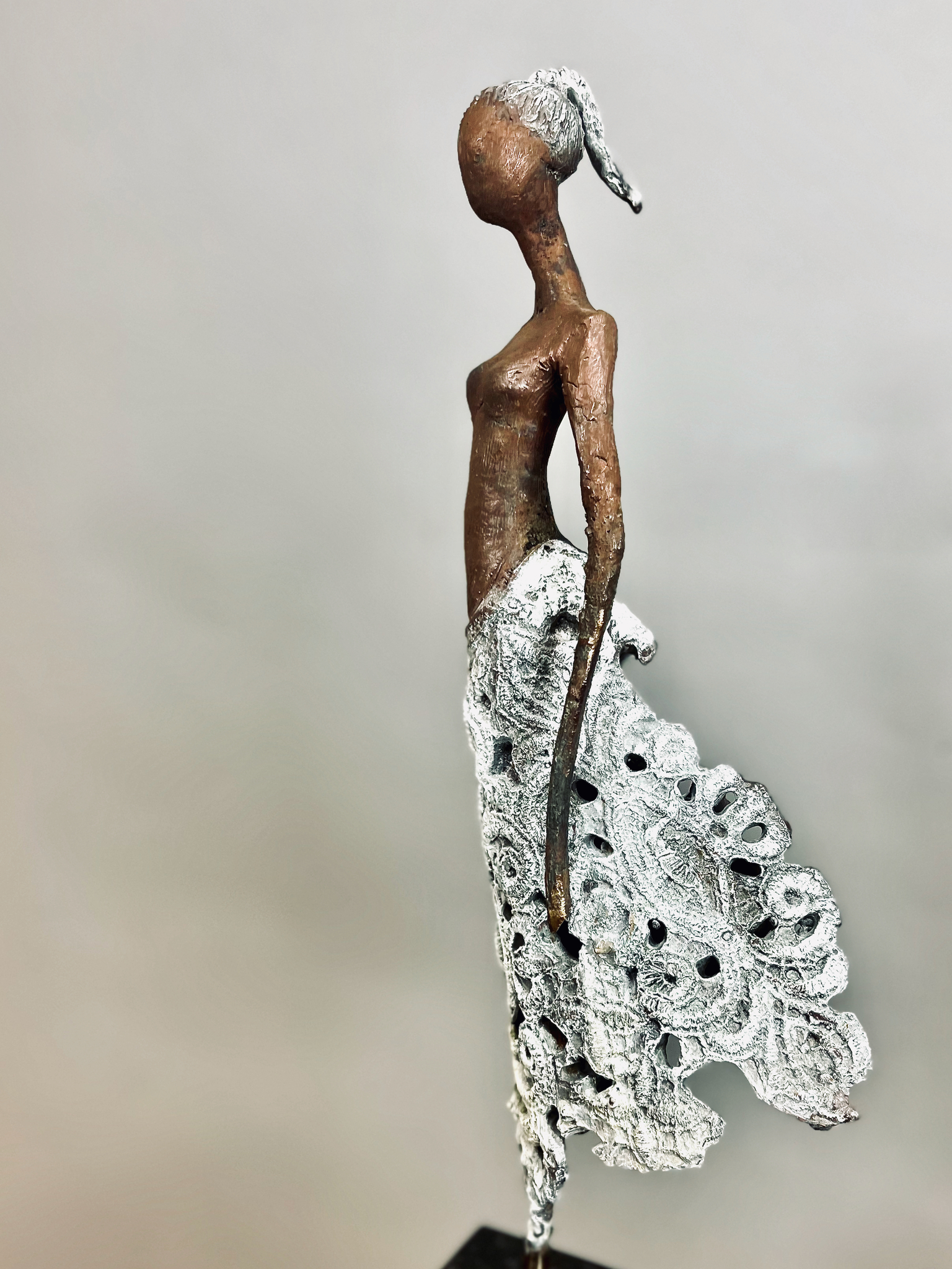 Wit Meisje Vrouw Beeld Patina Beeldhouwen Beeldje Bronzen Loes Beeldentuin Knoben