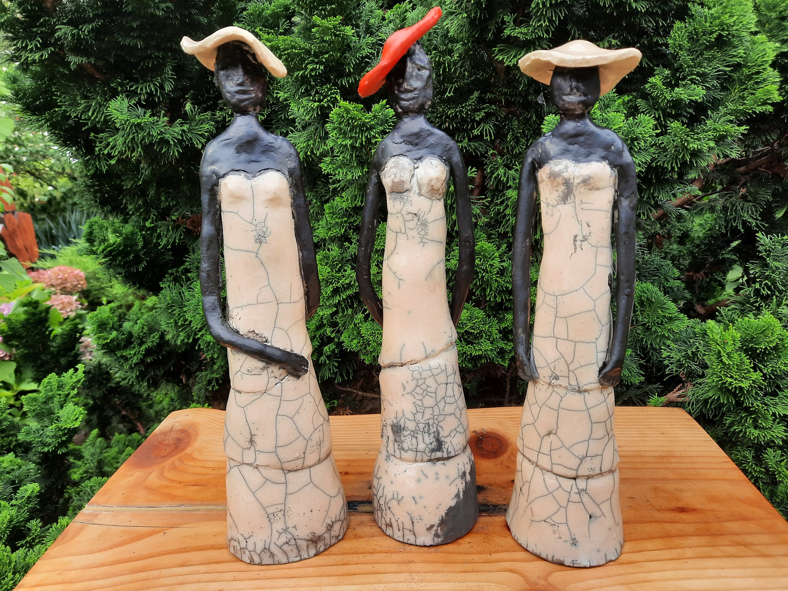 Deze drie dames staan te pronken met hun kleding en mooie hoed. Een wilde even wat anders dus een rode hoed