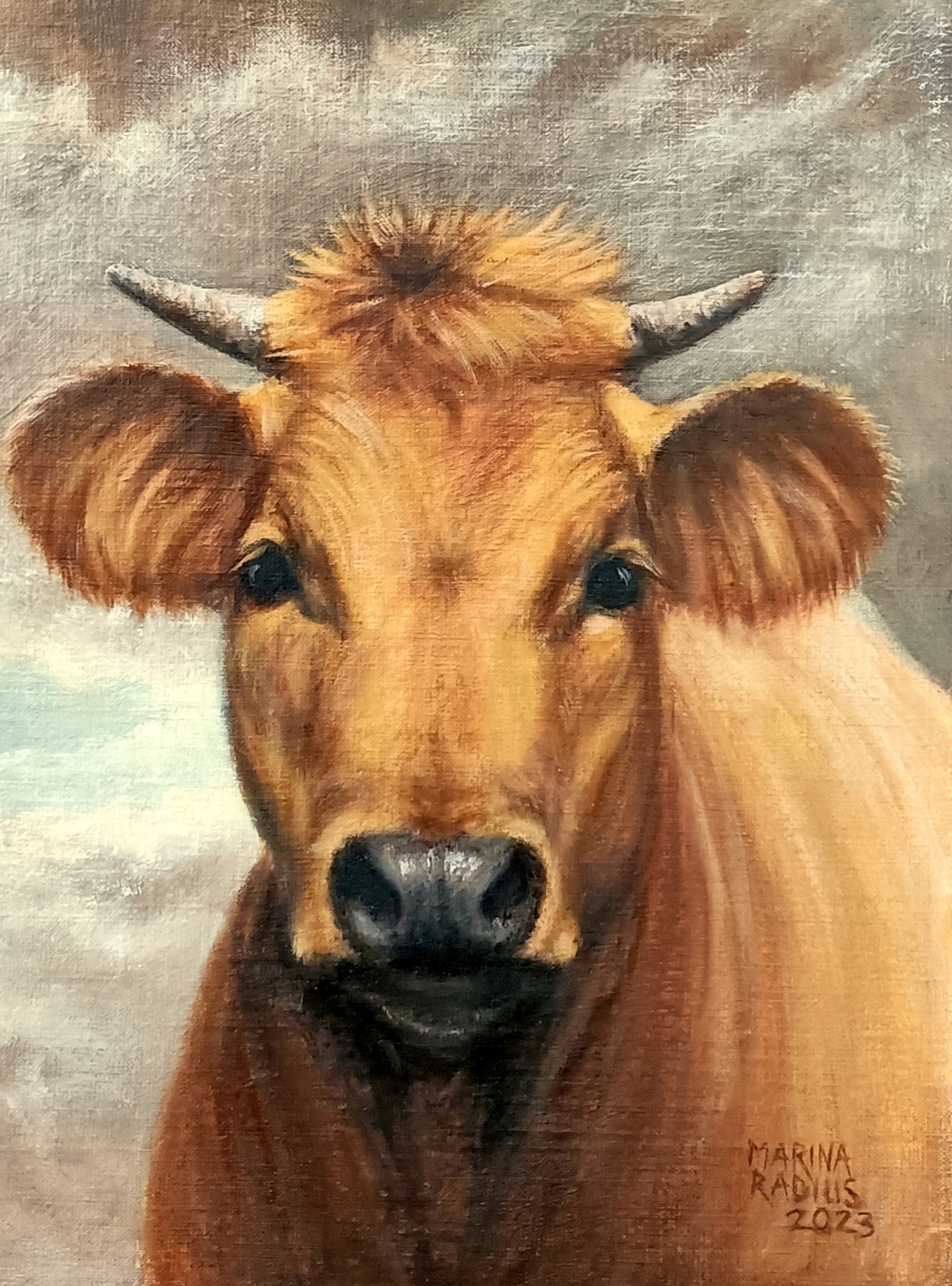 Marina Radius maakt olieverfschilderijen en beelden in brons en steen. Naast vrij werk maakt zij portretten van mens en dier in opdracht. Sinds 1975 exposities in binnen-en buitenland.