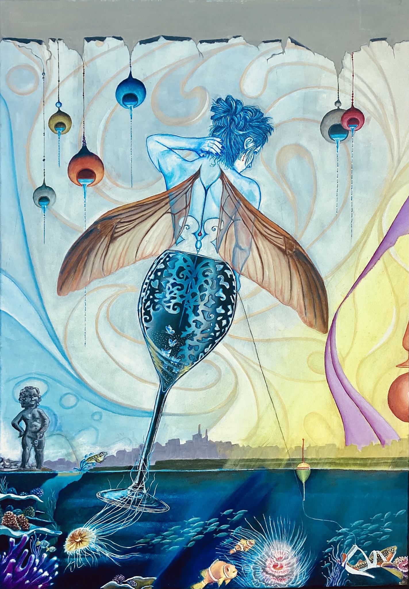 Vrouw Fantasie Vissen Wijnglas Aquarium
