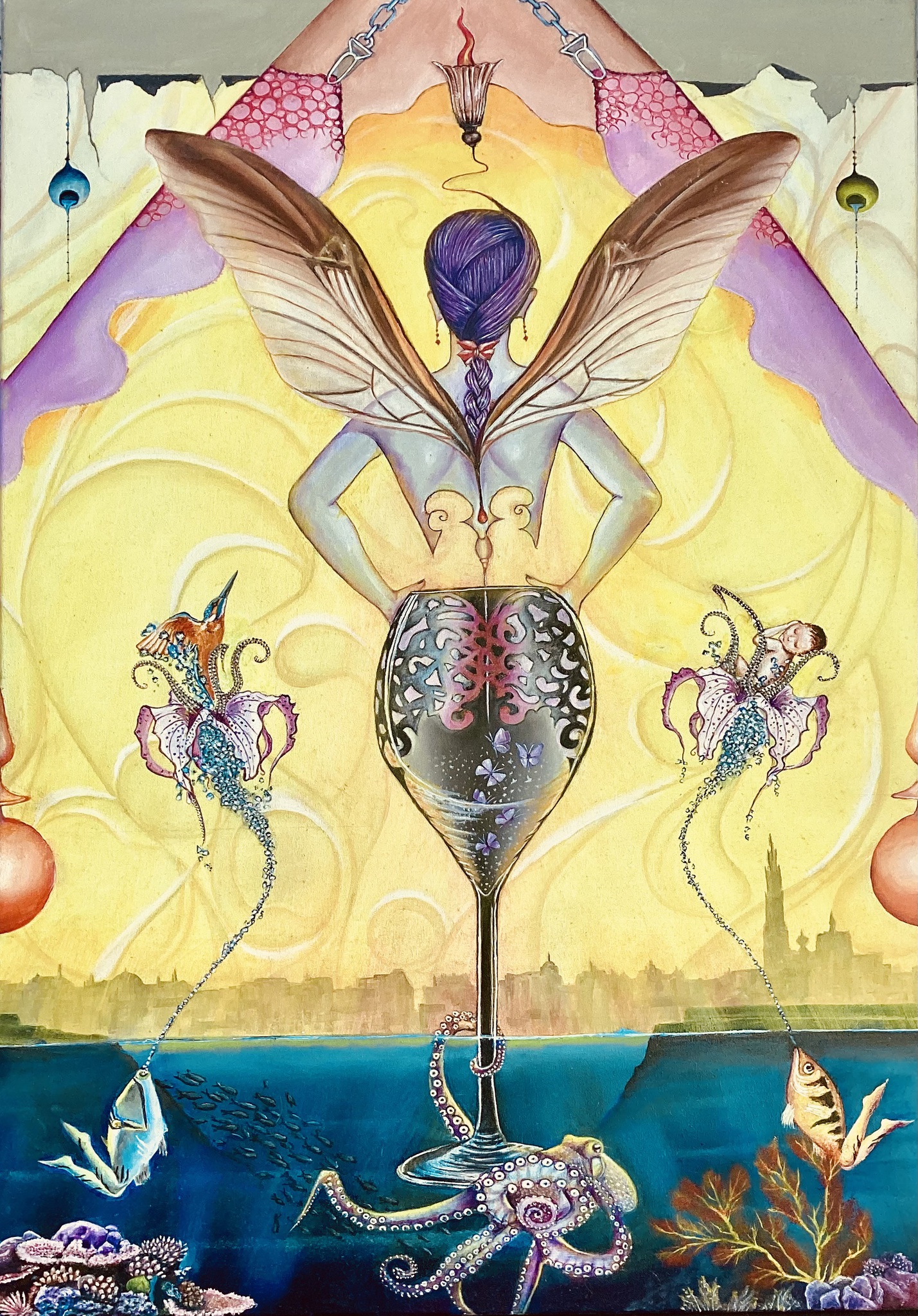 Vrouw Fantasie Vissen Wijnglas Aquarium Octopus