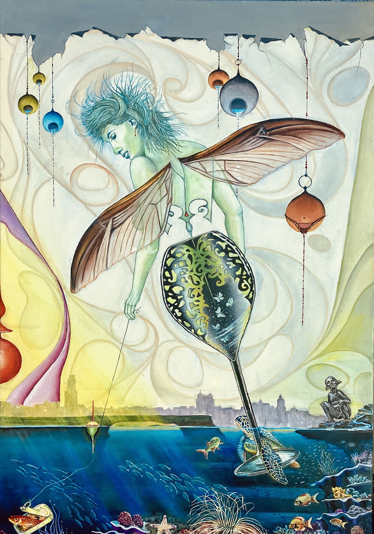 Vrouw Fantasie Vissen Wijnglas Aquarium Waterschildpad