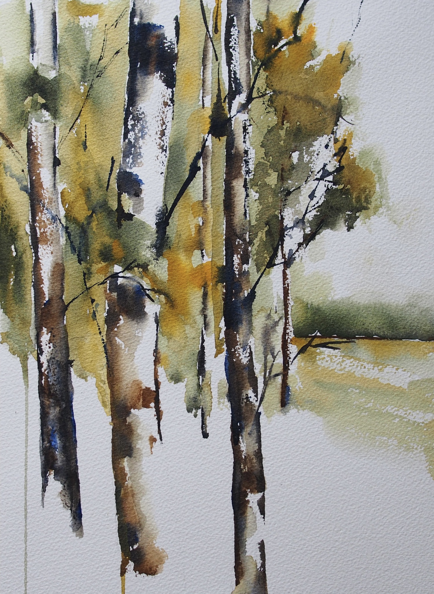 Bosrand, aquarel 36 x 26 cm - indien ingelijst, 40 x 50cm
