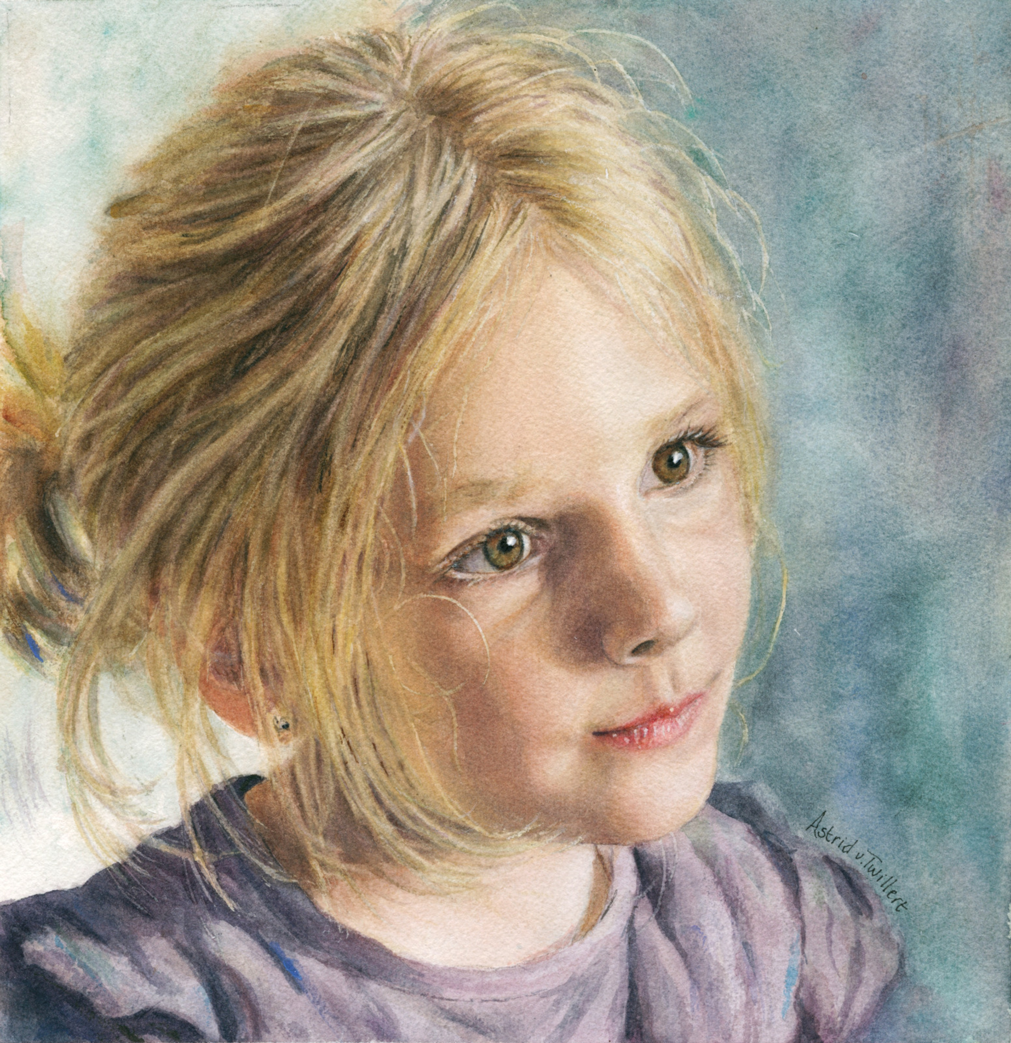 Meisje Kind Portret Aquarel Realistisch Hyperrealistisch