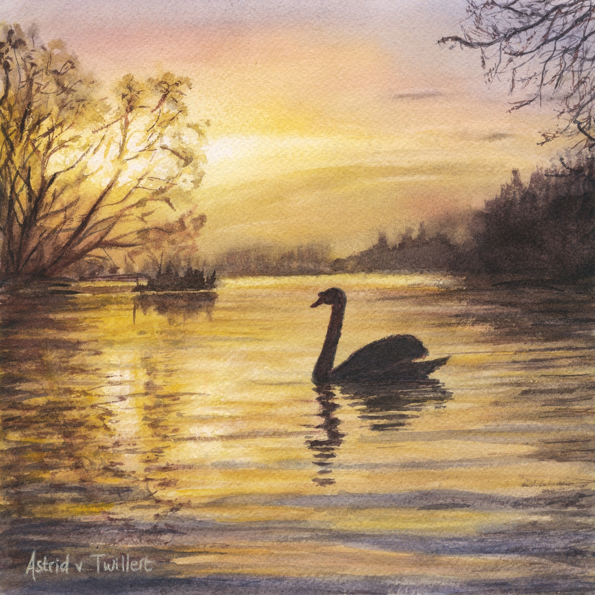 Het origineel is te koop. Dit werk is tevens verkrijgbaar als giclée in limited edition (50). Deze aquarel is deel van een serie van twee. Zie onder de categorie water 'Nature's silhouette: A Rower'