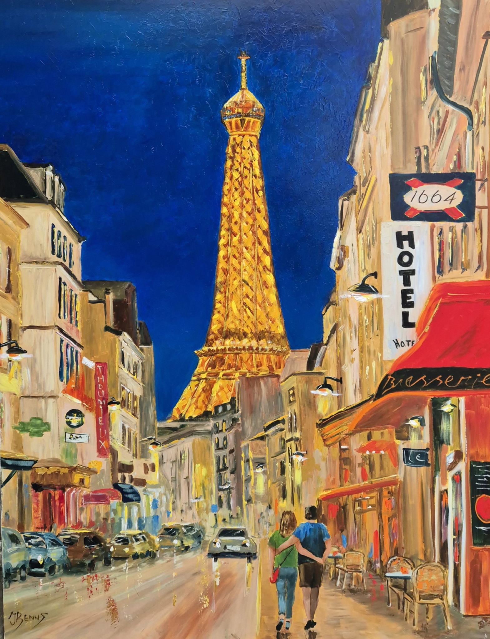 Schilderij Painting Nacht Stad Paris Citypainting Bigpainting Nightscene