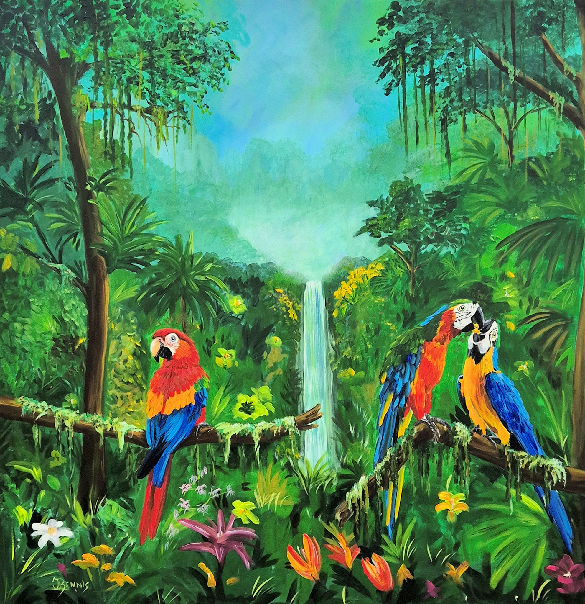 Parrots Painting Forest Oerwoud Papegaaien Schilderij Acrylic