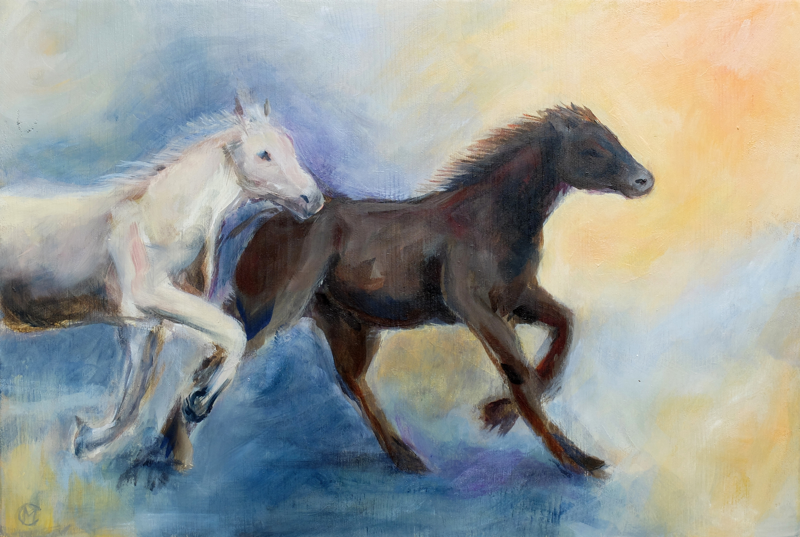 De weidsheid van het wad, wind en water tot aan de horizon. Het is deze weidsheid die ik in mijn landschappen wil laten zien. In dunne lagen olieverf geef ik de tere kleuren tussen land en water weer.