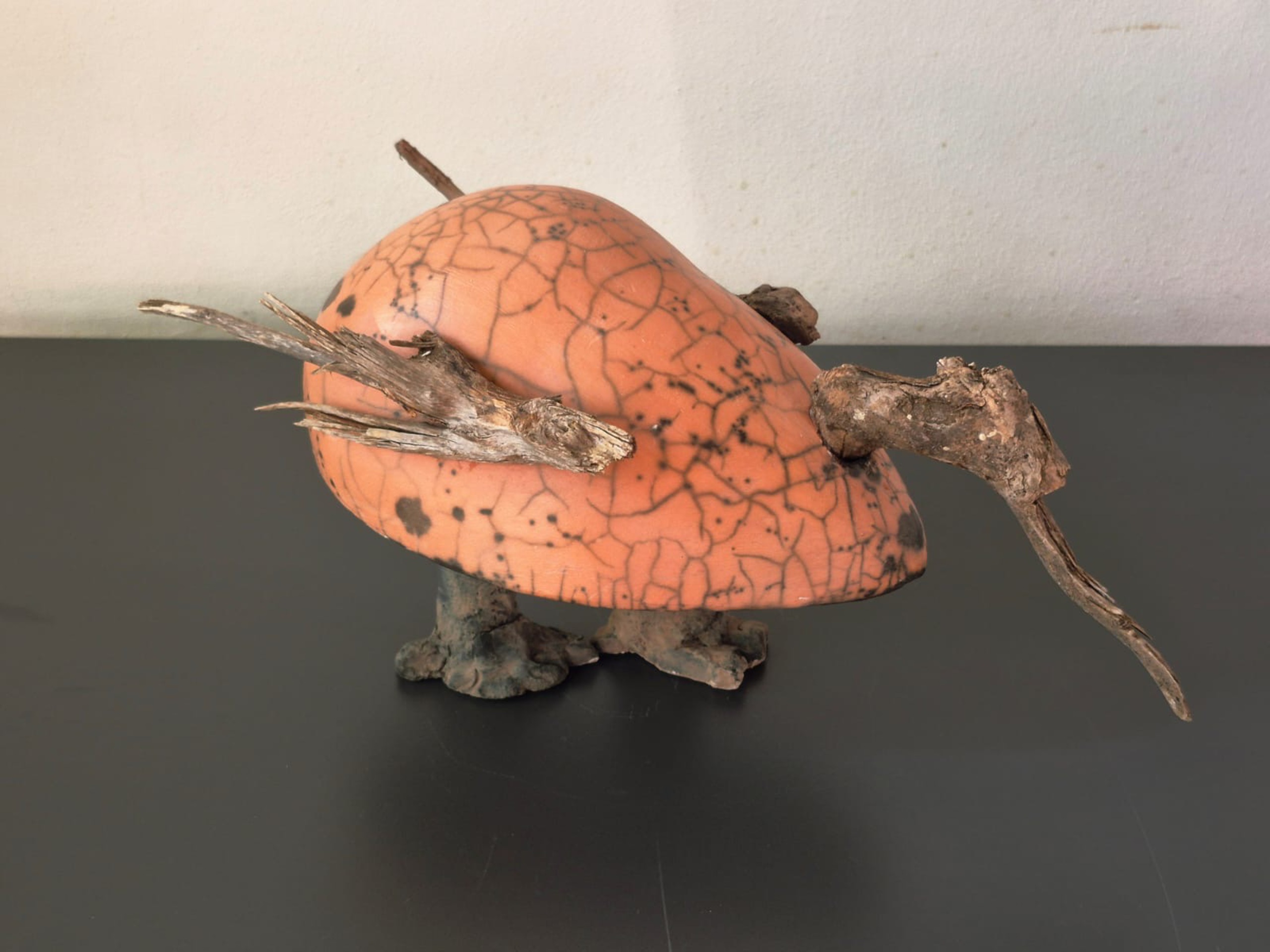 Mijn keramiek is rond, gebogen, zacht en geleidelijk verlopend met verrassende details van laagsgewijs opgebouwde onderdelen die juist speciale aandacht krijgen. Ik laat me uitdagen door het zogenaamde primitieve stoken; pitfire en naked raku.