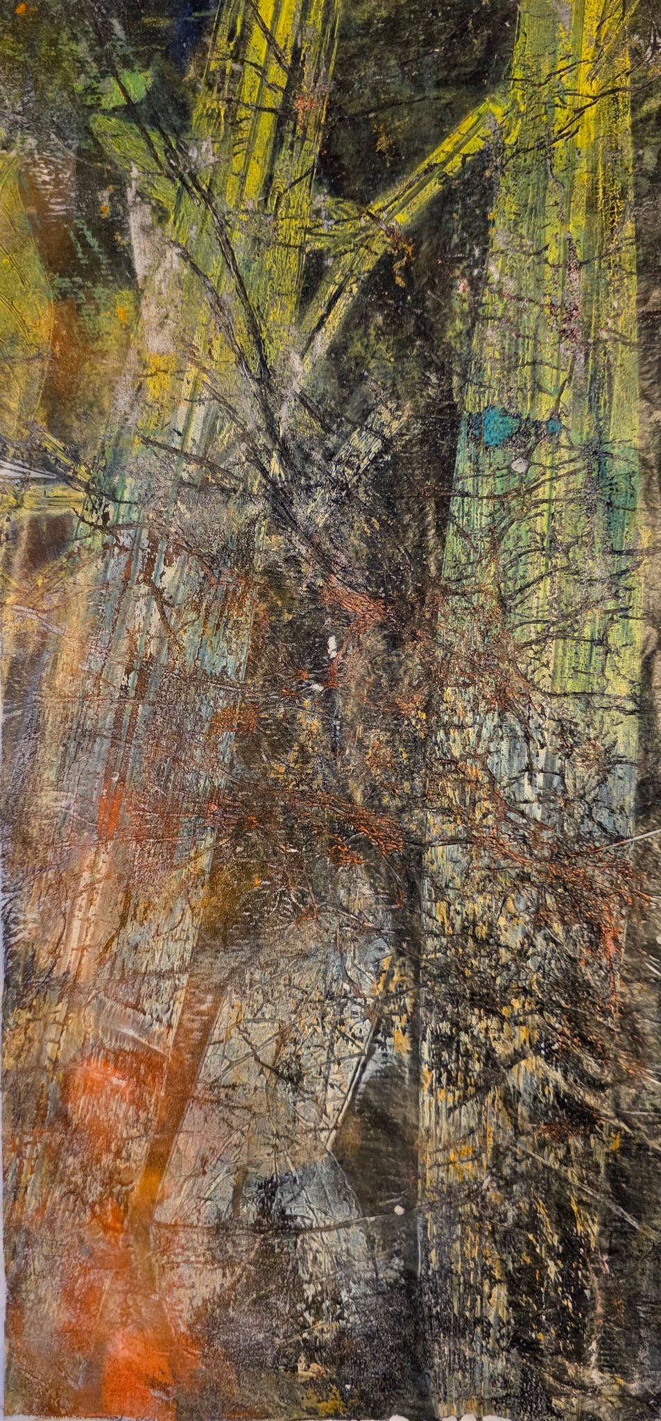 De warmte van de zomer en de complexiteit van de gewassen, vind je terug in deze monoprint. Uniek, er maar 1 afdruk mogelijk, geprint op rijstpapier. Rijstpapier dat mestal van de moerbei komt en niets met rijst te maken heeft.