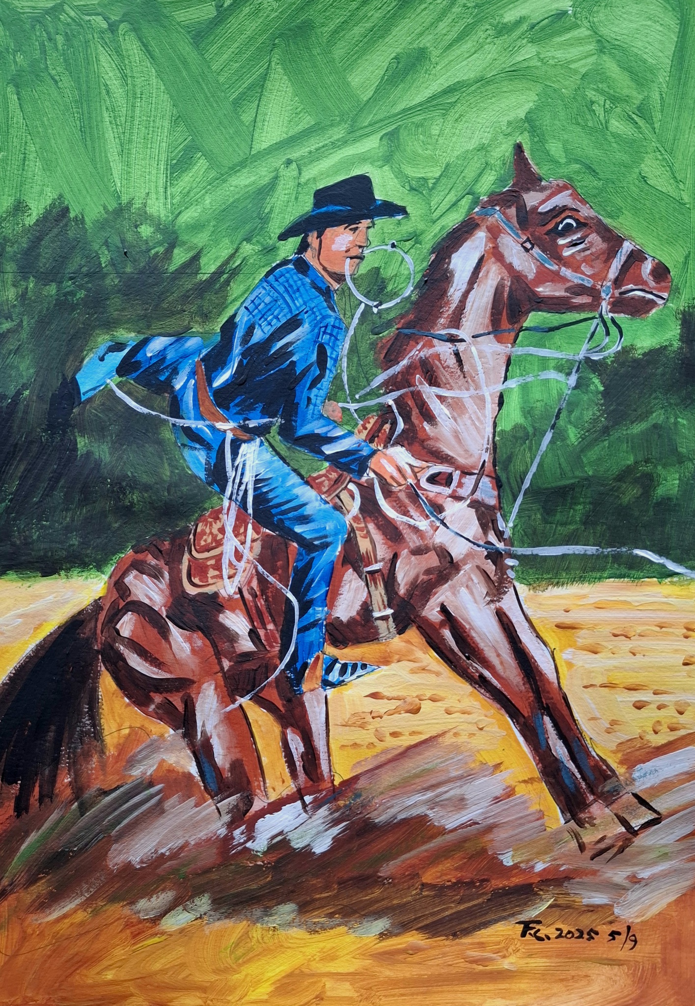 Rodeo Cowboy Western Art Paard