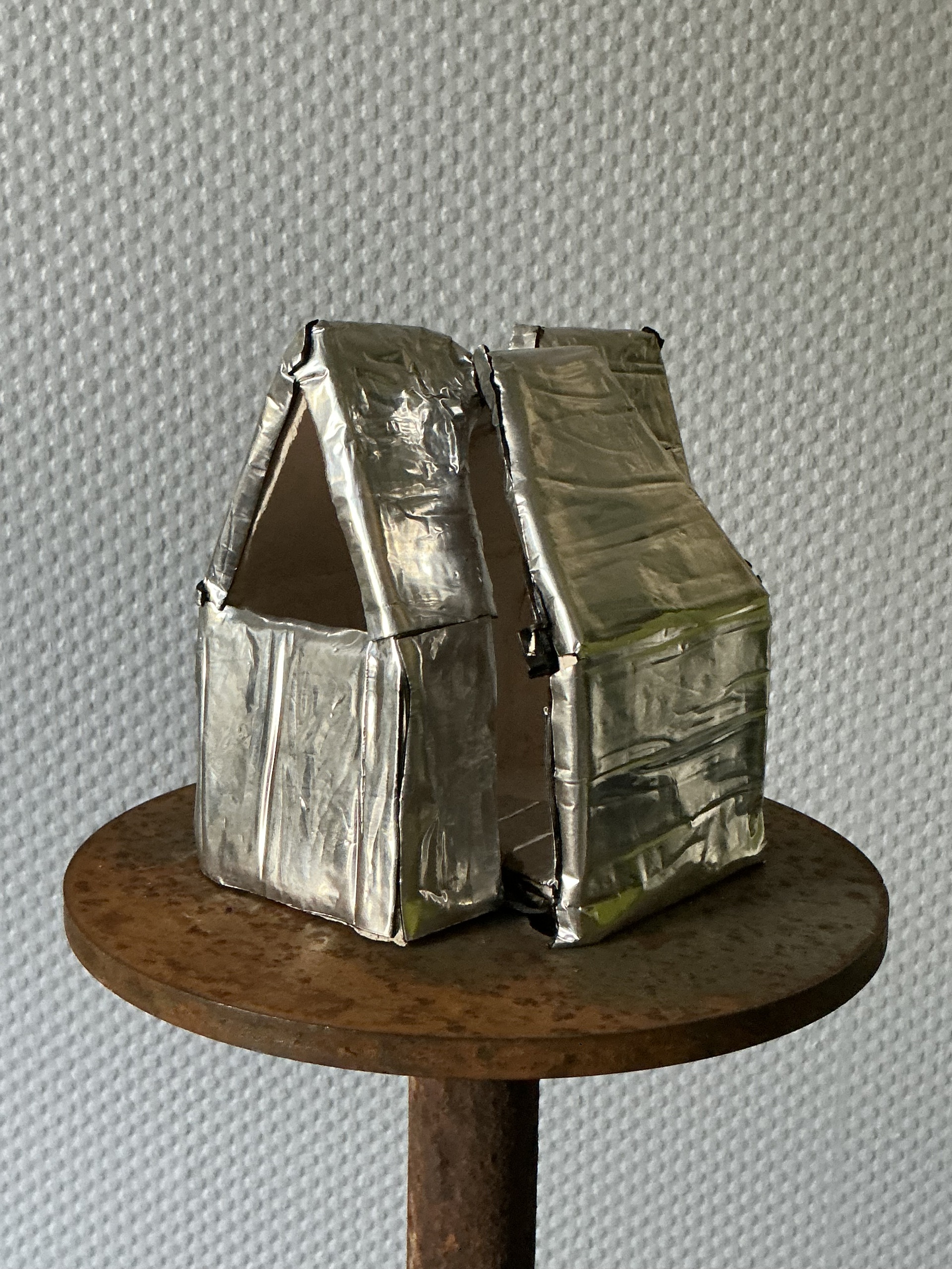 Huisje met bekleding van spiegelend dakleer