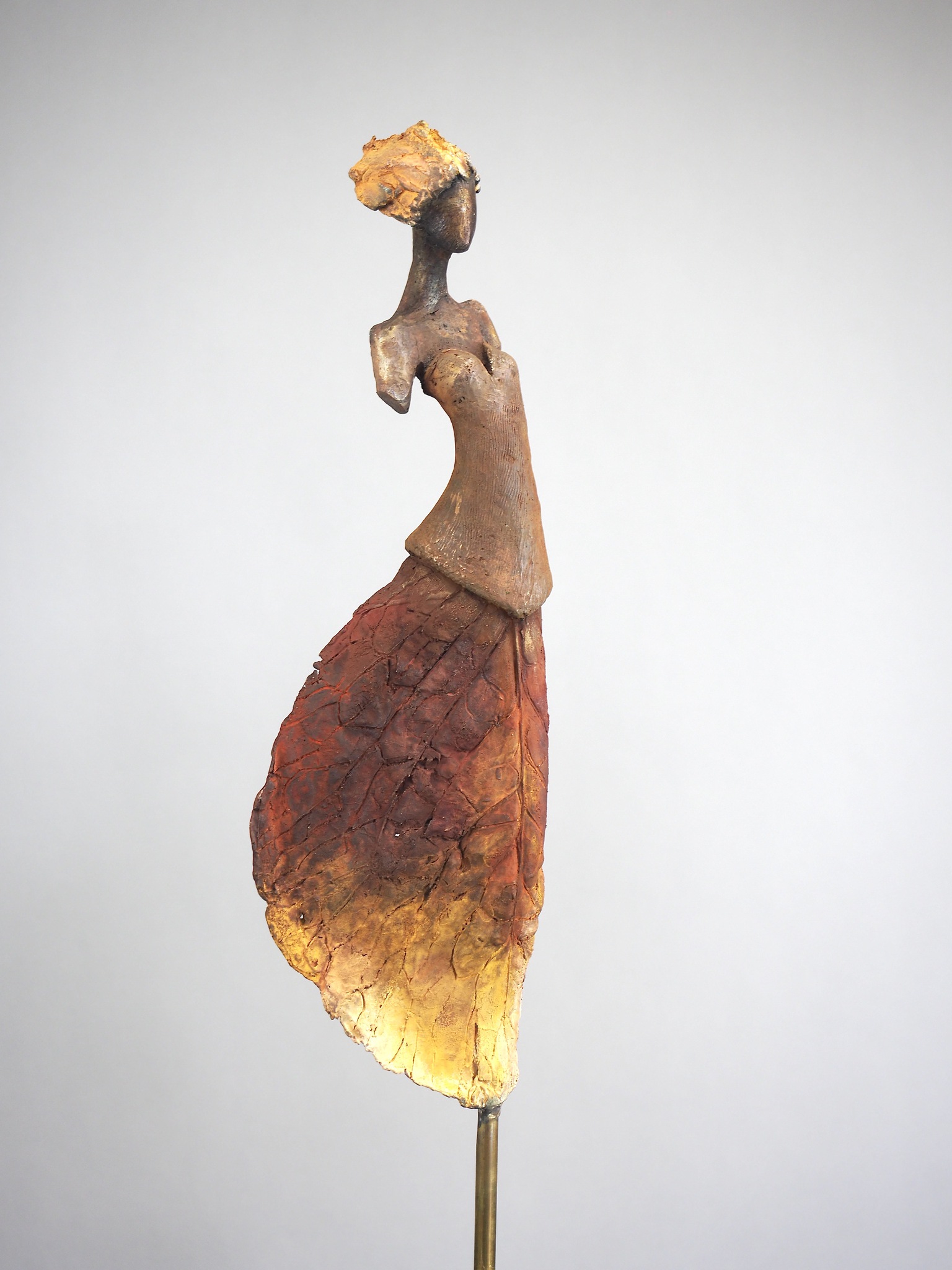 Rood Oranje Geel Brons Vrouw Beeld Natuur Bladeren Galerie Atelier Patina Beelden Bronzen Beeldentuin Loesknoben Bronsgieter Meret