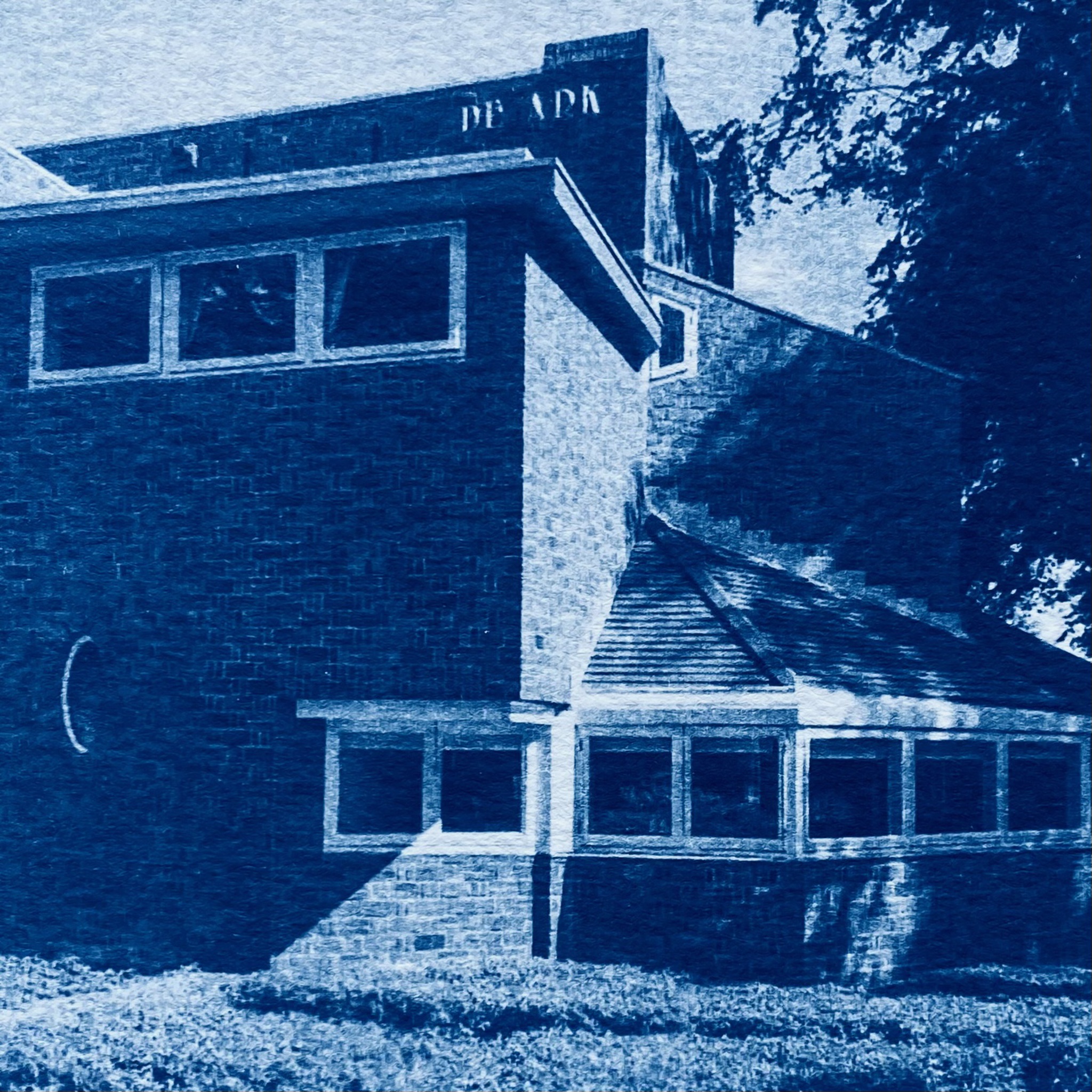 Uit de reeks Bergens Blauw, een serie unieke fotogrammen in Cyanotype techniek. De fotogrammen zijn gemaakt op 300 grams aquarelpapier en zitten in een klein houten bak lijstje. Afmeting inclusief lijst.