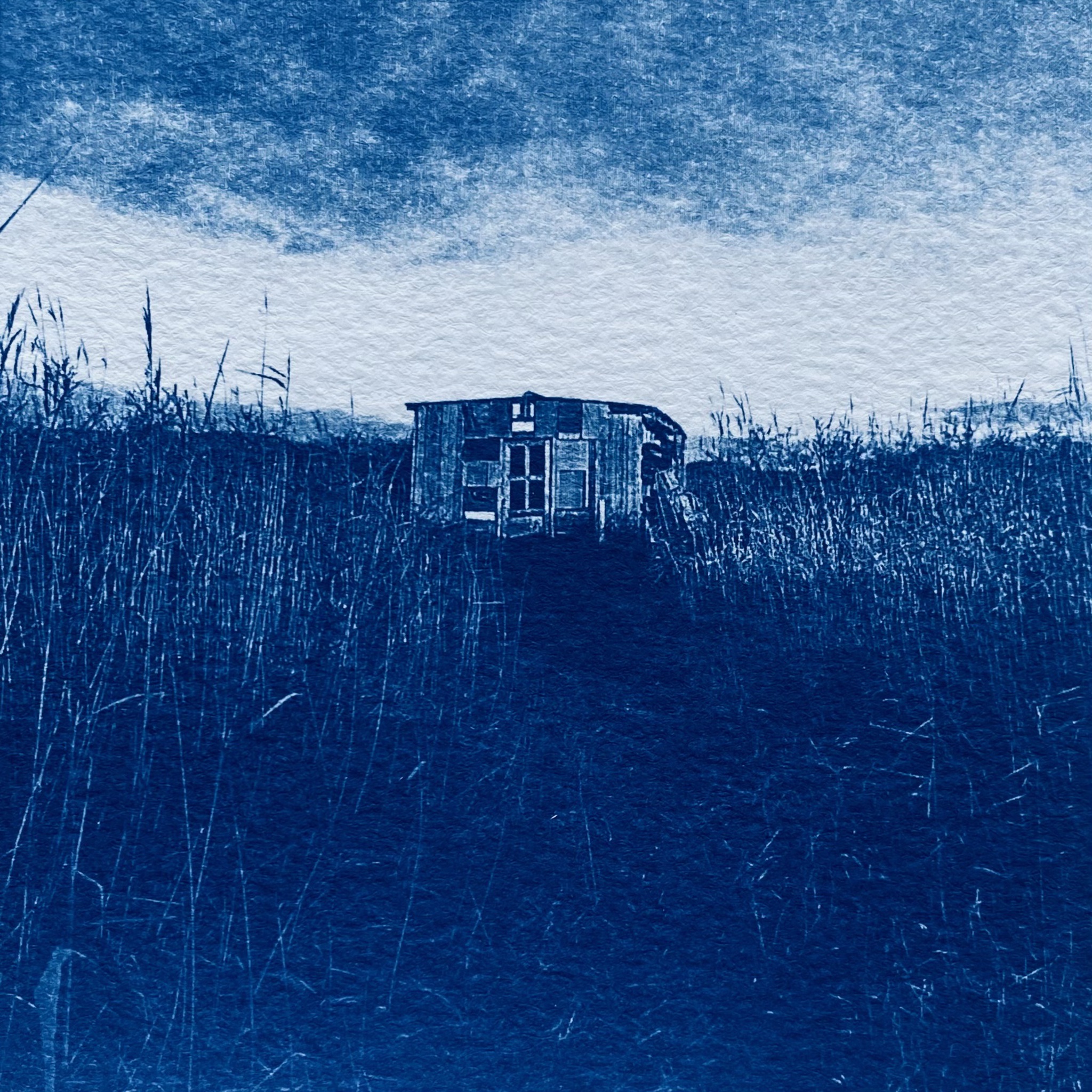 Uit de reeks Bergens Blauw, een serie unieke fotogrammen in Cyanotype techniek. De fotogrammen zijn gemaakt op 300 grams aquarelpapier en zitten in een klein houten bak lijstje. Afmeting inclusief lijst.