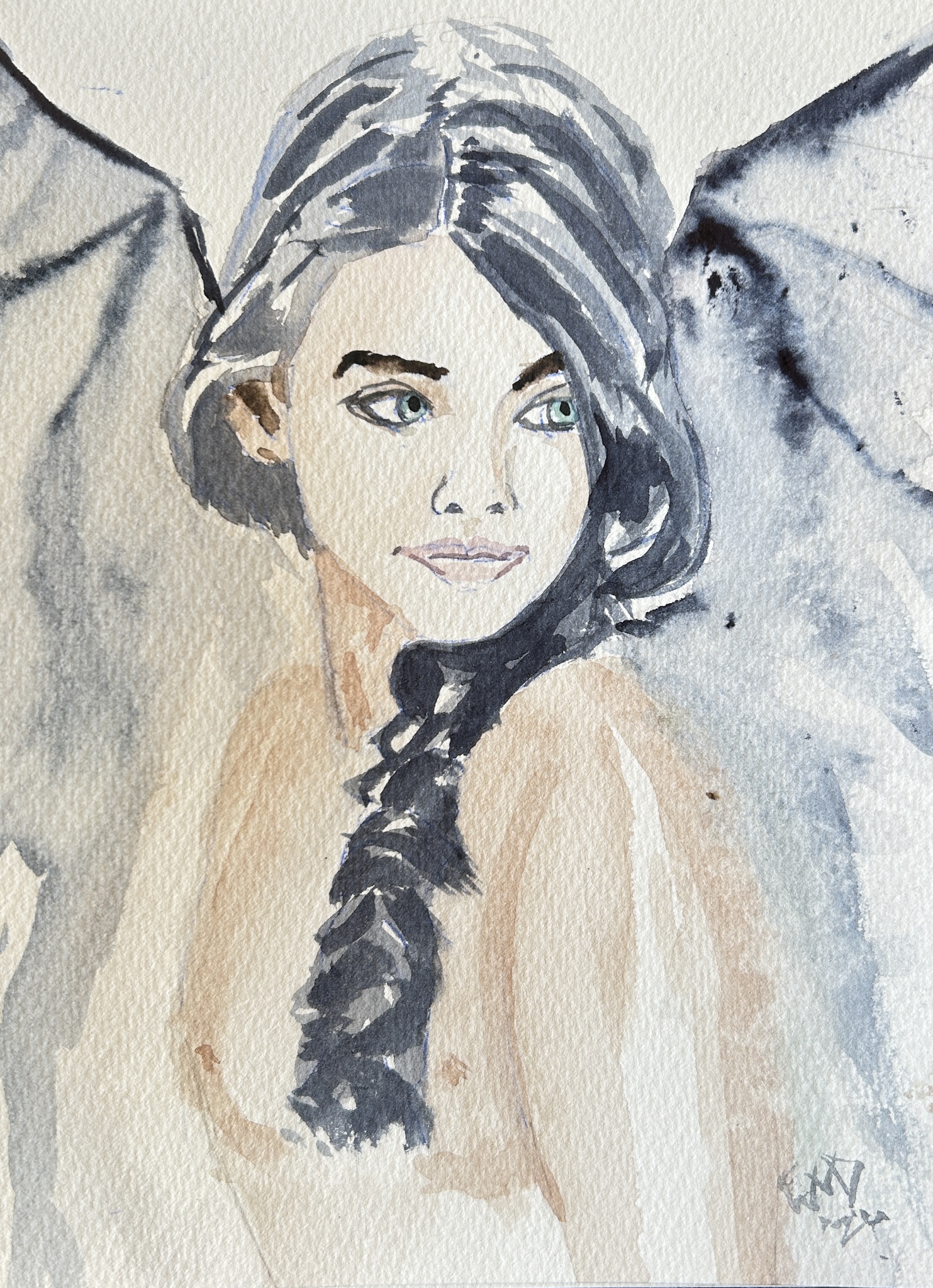 Portret Aquarel Portrait Girl Watercolor Jongedame