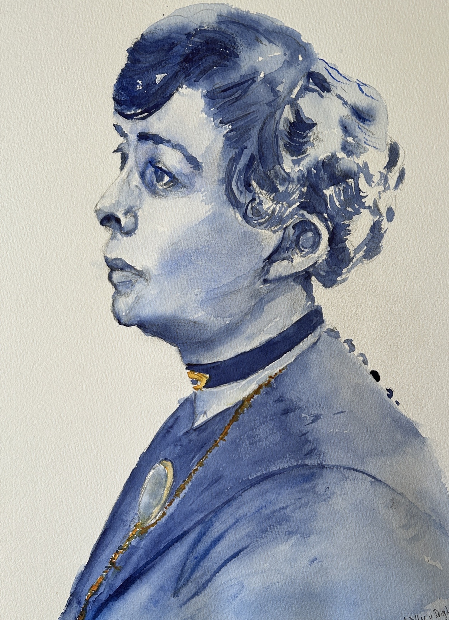 Portret Aquarel Portrait Watercolor Boudierbakker Geëxposeerd