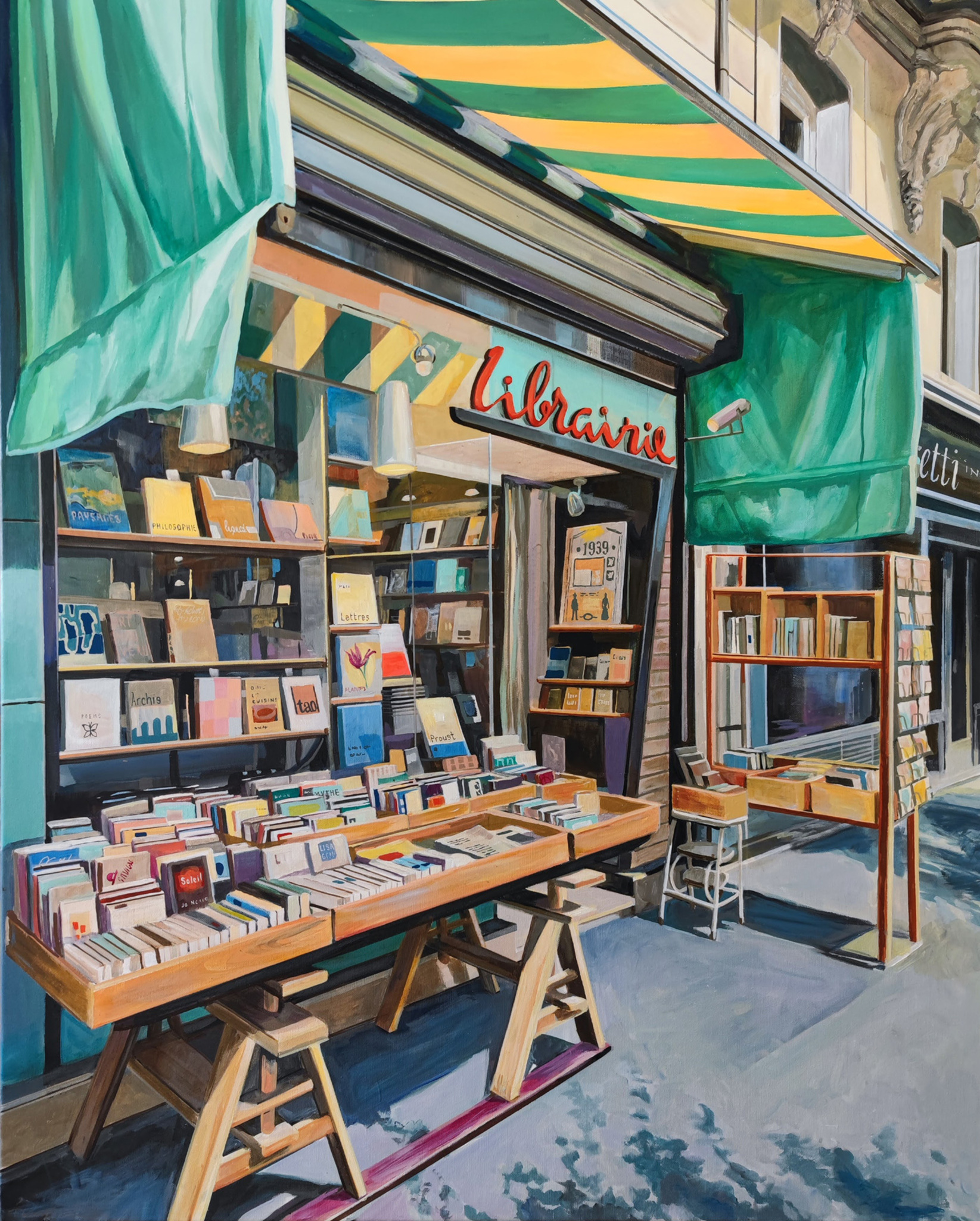 Ik schilder de stad: straten, gevels, etalages, interieurs.