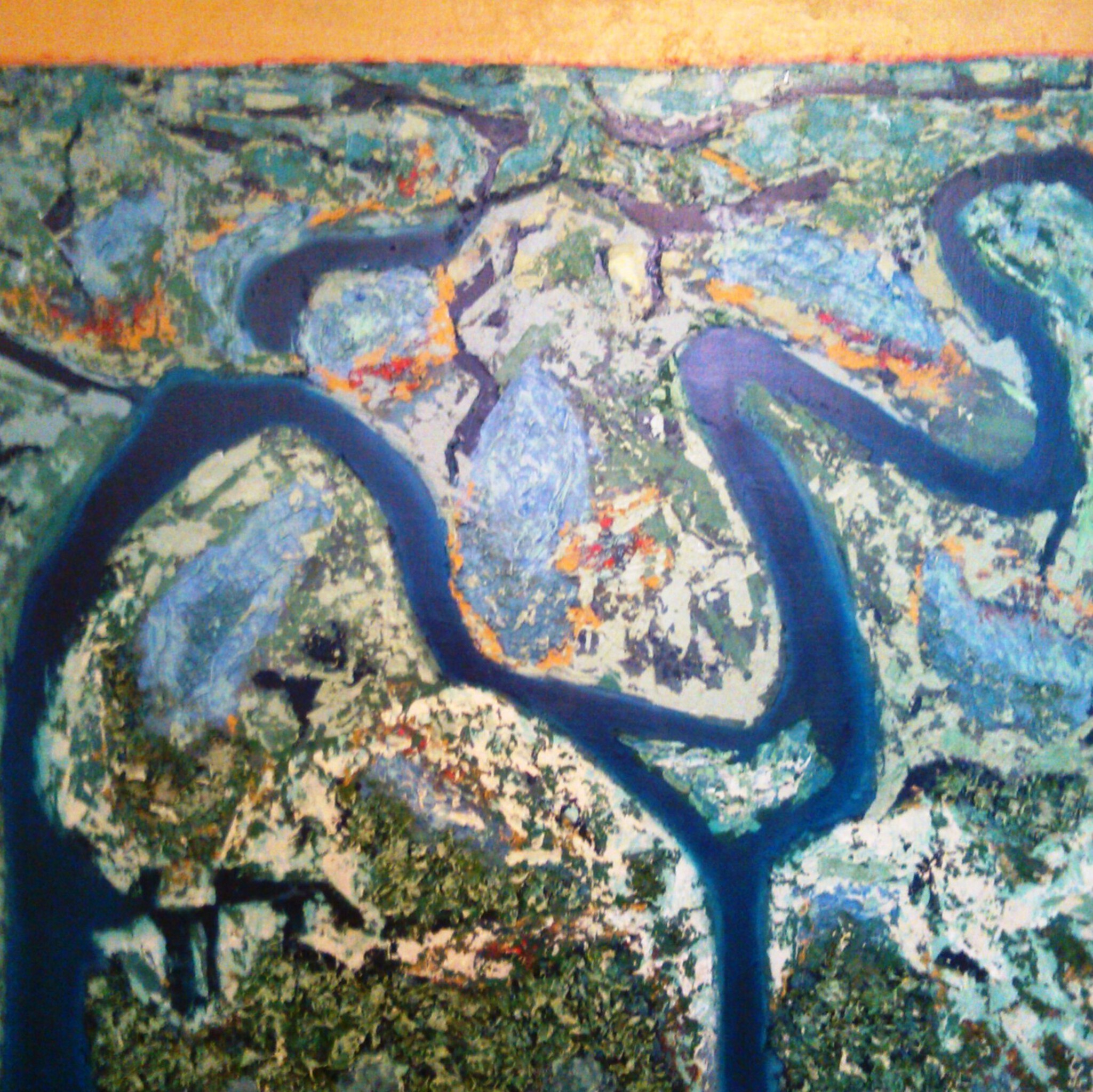 De combinatie van enkele felle kleuren creëert een levendig beeld van de Biesbosch.