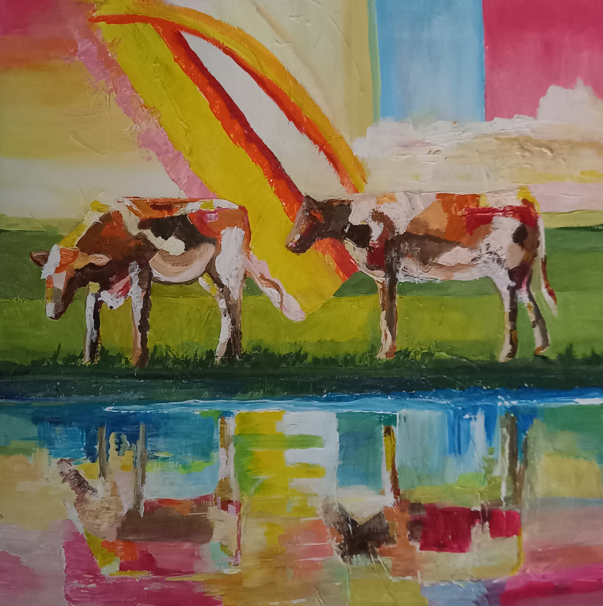 Ijssel Koeien Spiegeling Water Kleurrijk