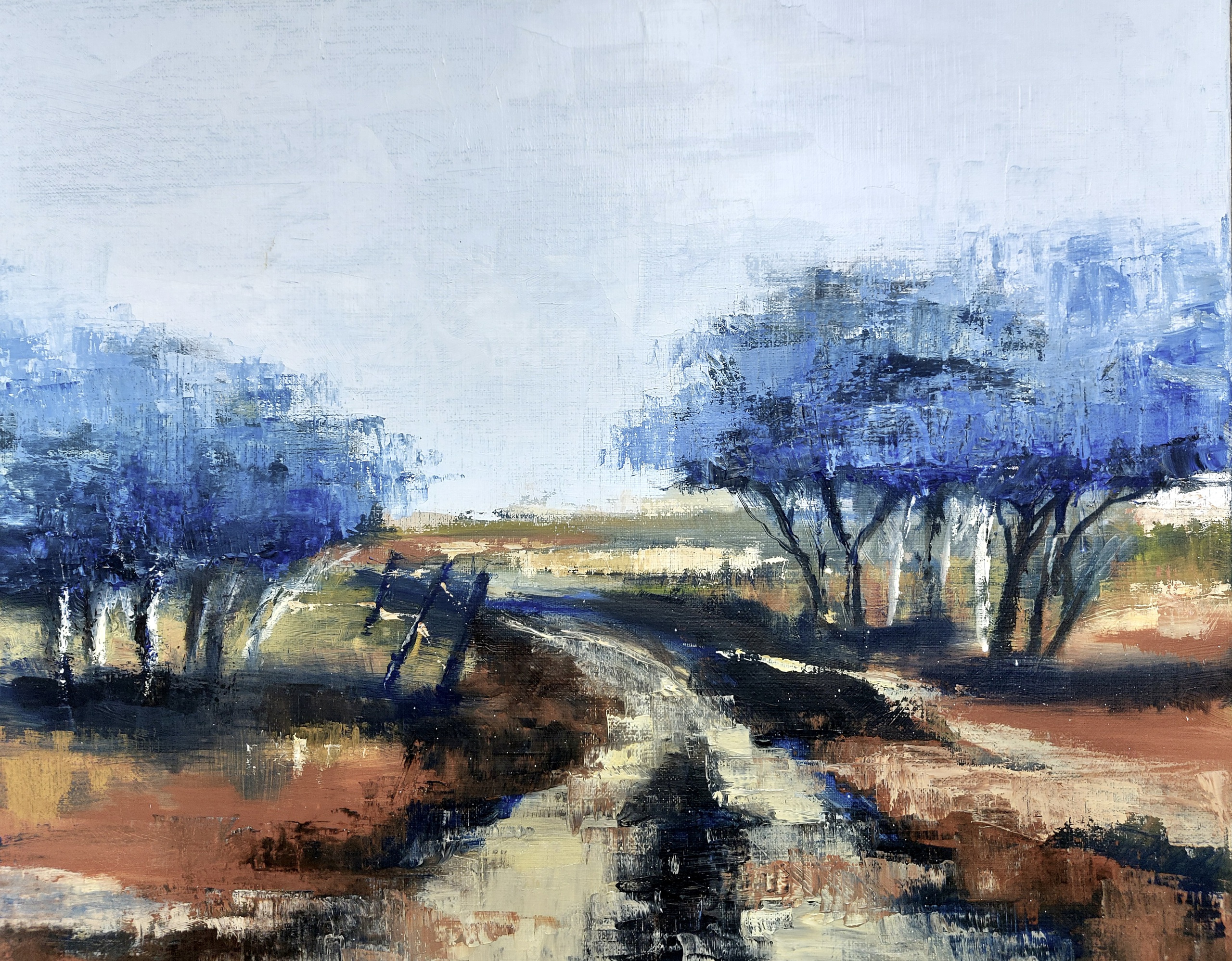 Landschap met blauwe bomen, olie op linnen 40x50cm