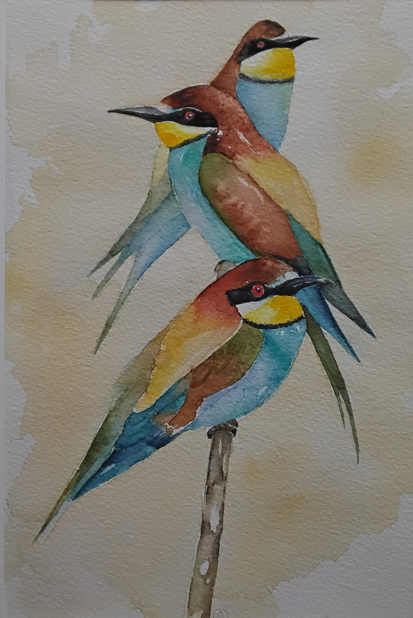 Bijeneters aquarel inclusief passe-partout en matte aluminium lijst van 30x40