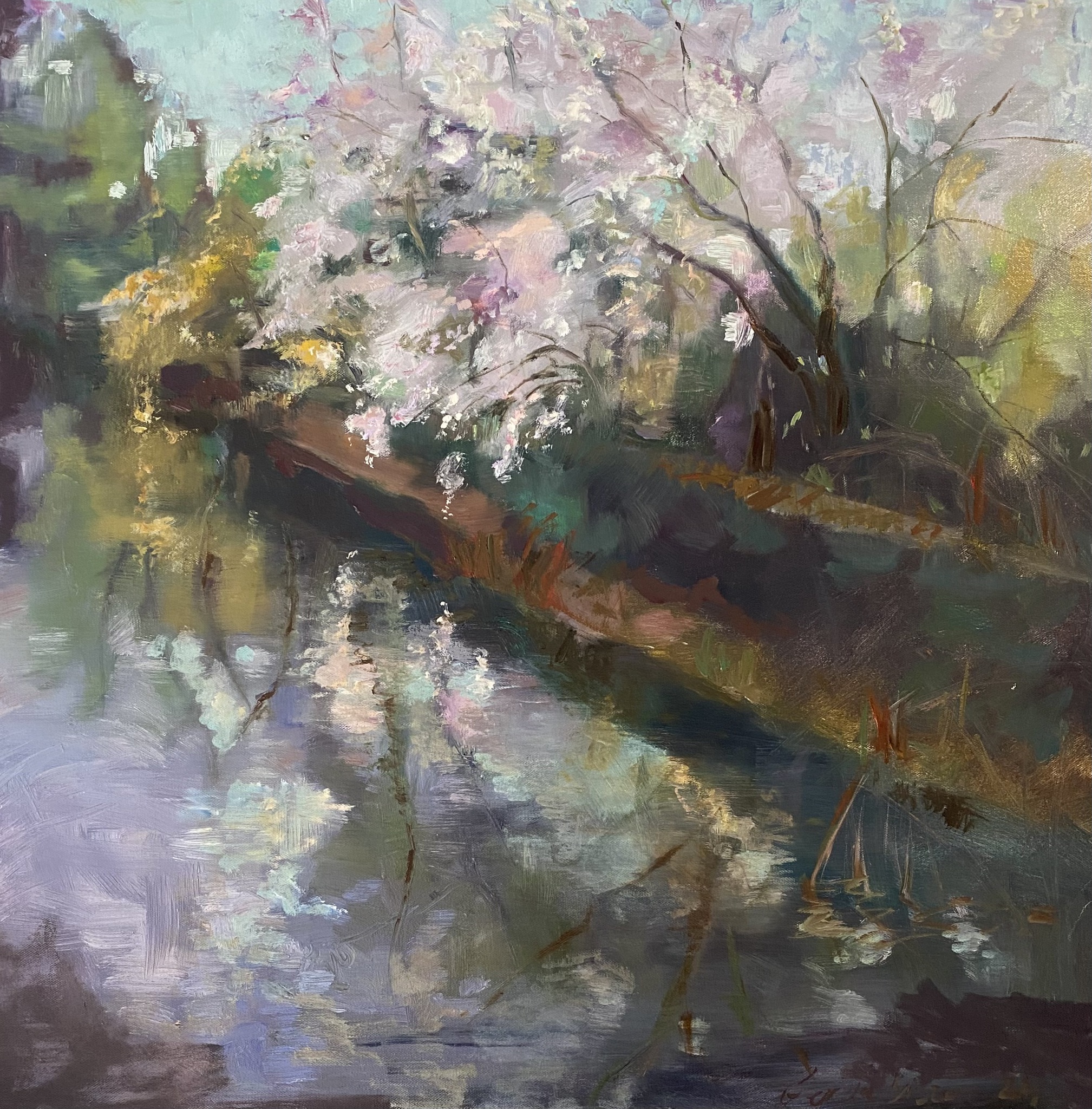 langs de waterkant (2024) Olieverf op doek | 70 x 70 cm Plein-air
